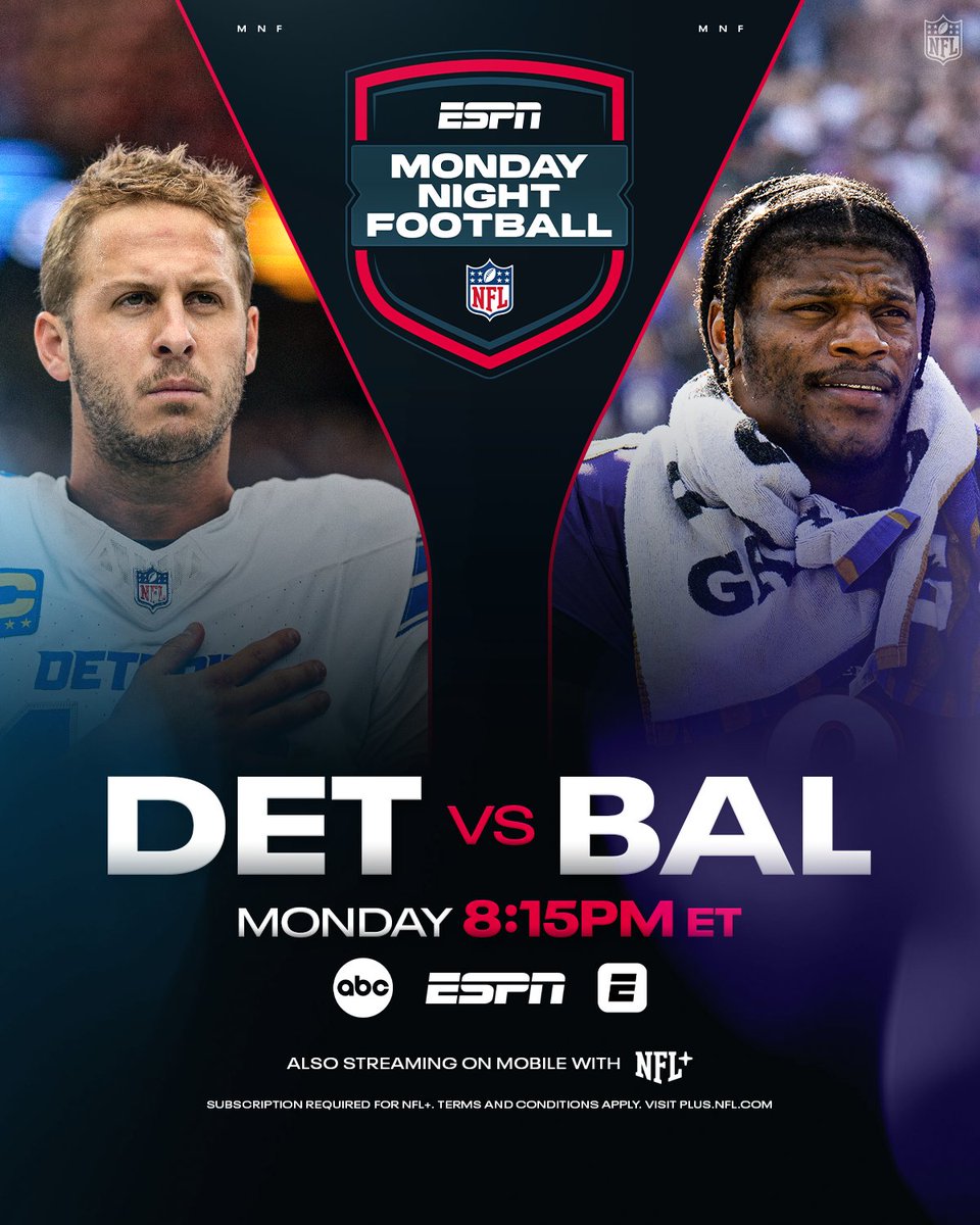 NFL官方X账号发布推文称,舞台已准备就绪底特律雄狮vs巴尔的摩乌鸦——北京时间今晚8:15ESPN/ABC直播可通过@NFLPlus及ESPN应用流媒体观看
