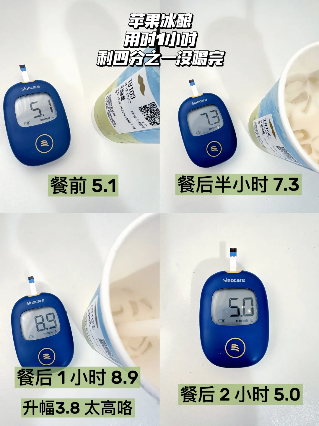 喝了一小时升幅是3,如果喝的快,对我来说肯定是血糖刺客了😭