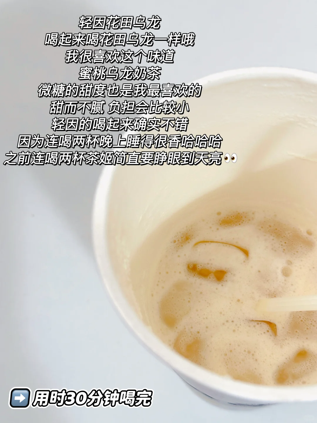 轻因花田乌龙喝起来喝花田乌龙一样哦,我很喜欢这个味道,蜜桃乌龙奶茶〰️