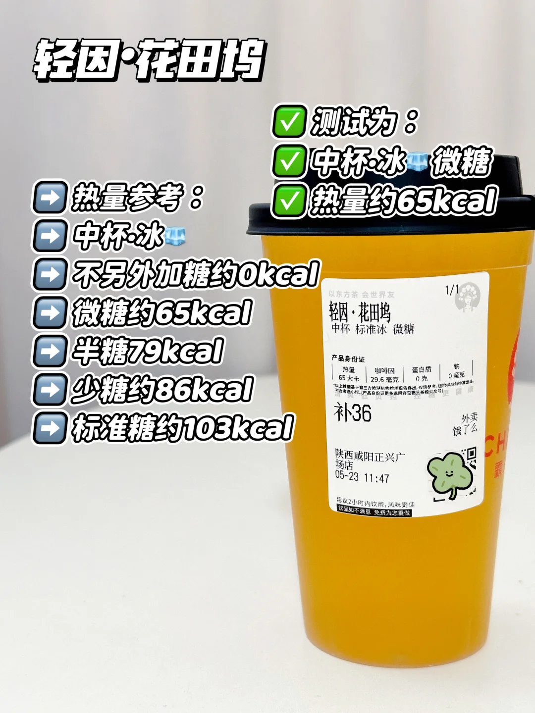 测试为:中杯·冰🧊微甜 热量约65kcal