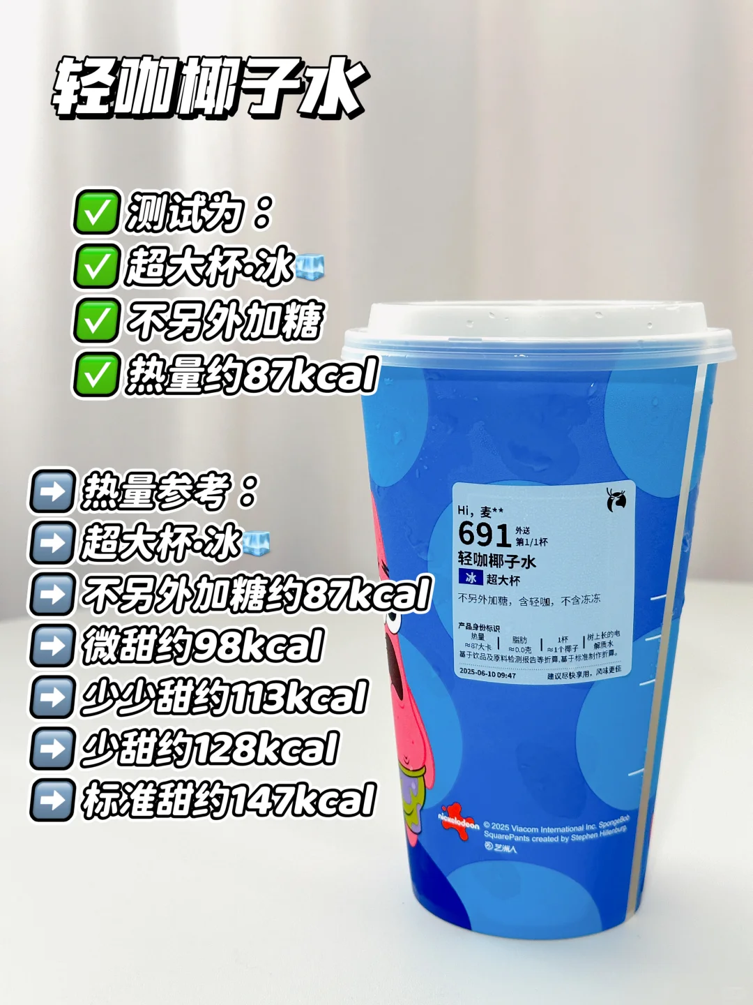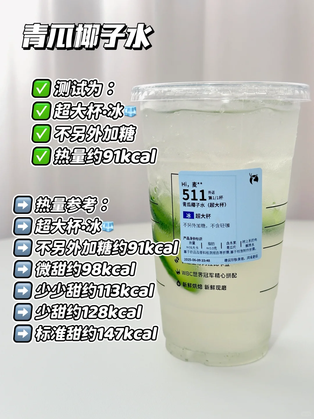 测试为:超大杯·冰🧊不另外加糖 热量约91kcal