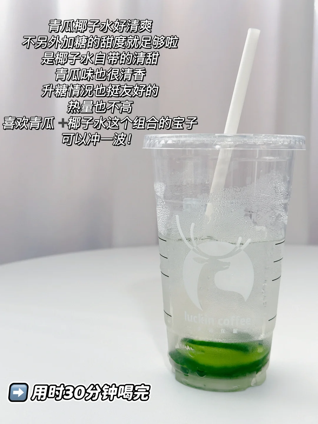 升糖情况也挺友好的,热量也不高,喜欢青瓜➕椰子水这个组合的宝子,可以冲一波!