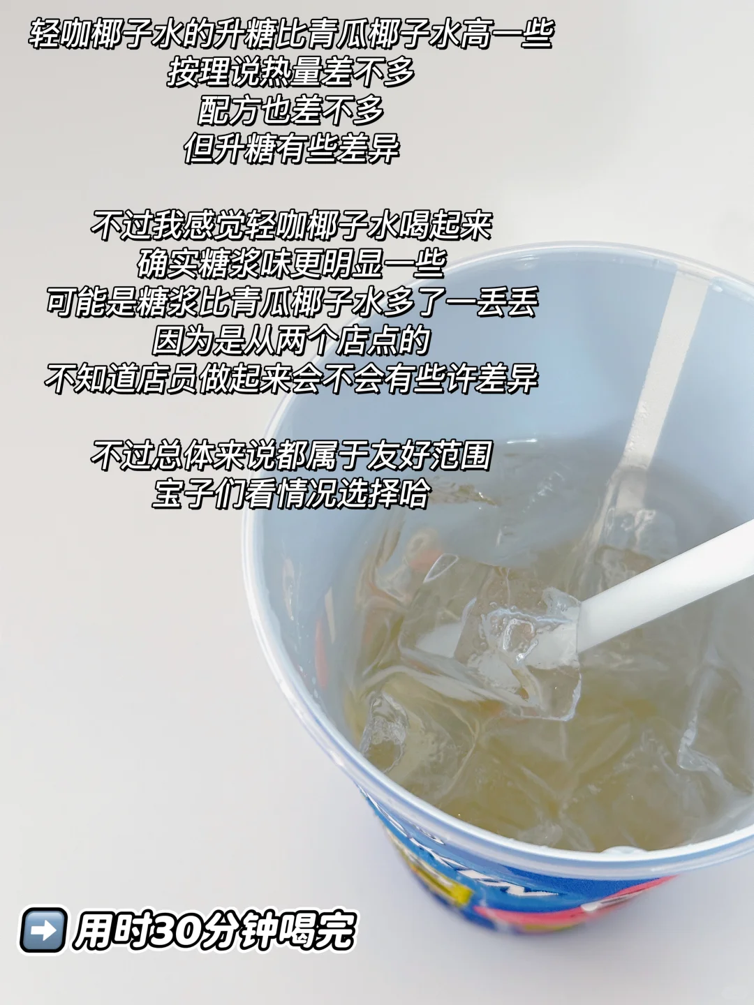 不过我感觉轻咖椰子水喝起来确实糖浆味更明显一些,可能是糖浆比青瓜椰子水多了一丢丢〰️