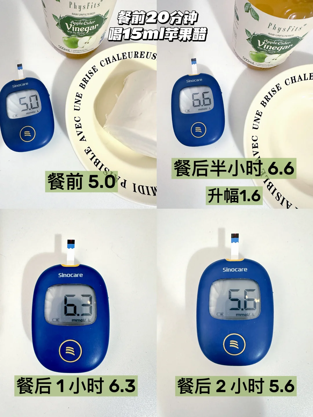 一直也有宝子留言让我测苹果醋,我之前一直认为餐前单次喝果醋可能效果不明显,需要长期喝,才能起到一些降低日常平均血糖水平的作用,直到做了这个测试🤣