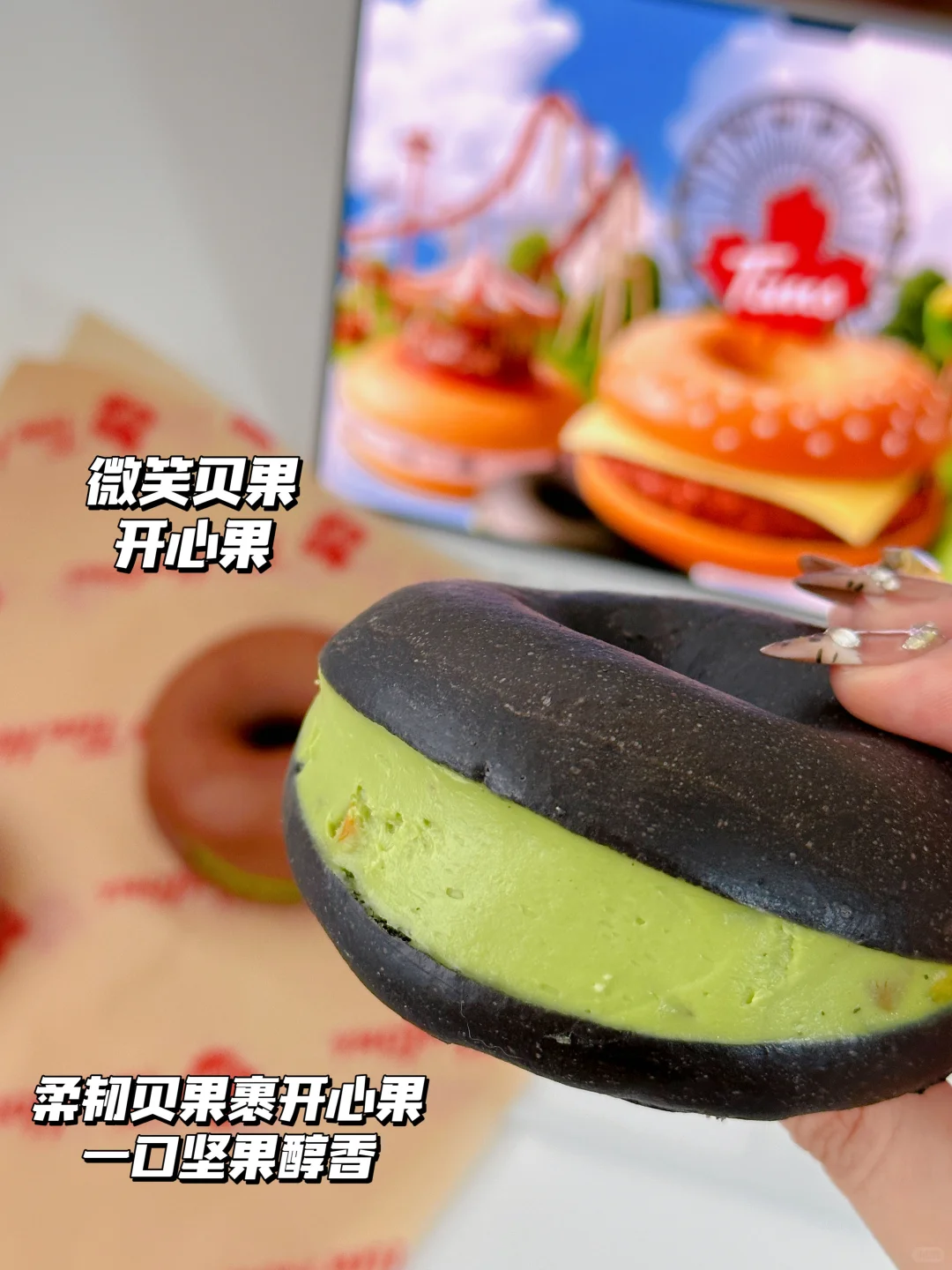 贝果里裹满会爆浆的开心果酱!坚果香气浓郁到上头,咬开还能嚼到细碎果仁,口感层次超丰富!一口就被这纯粹的开心果醇香俘获!