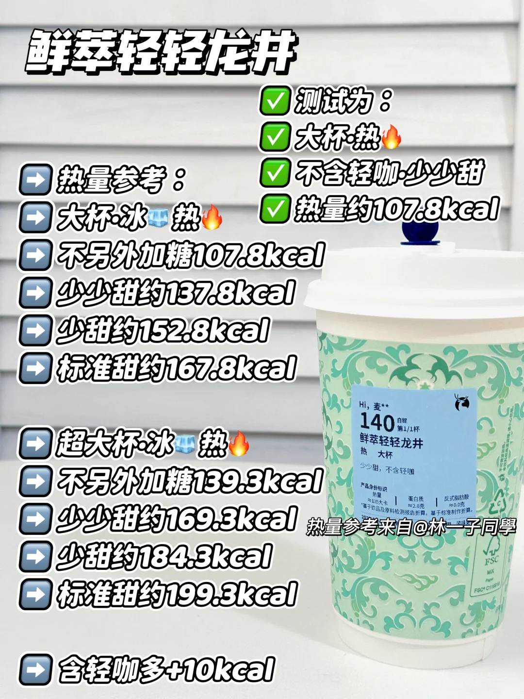 测试为:大杯·去冰·不另外加糖 热量约168kcal