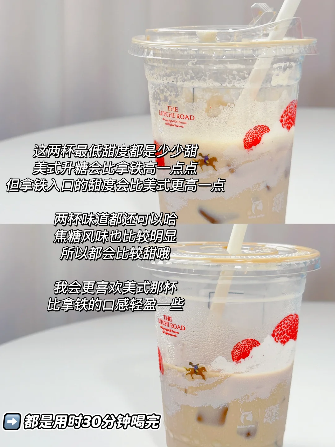 这两杯最低甜度都是少少甜,美式升糖会比拿铁高一点点,但拿铁入口的甜度会比美式更高一点〰️