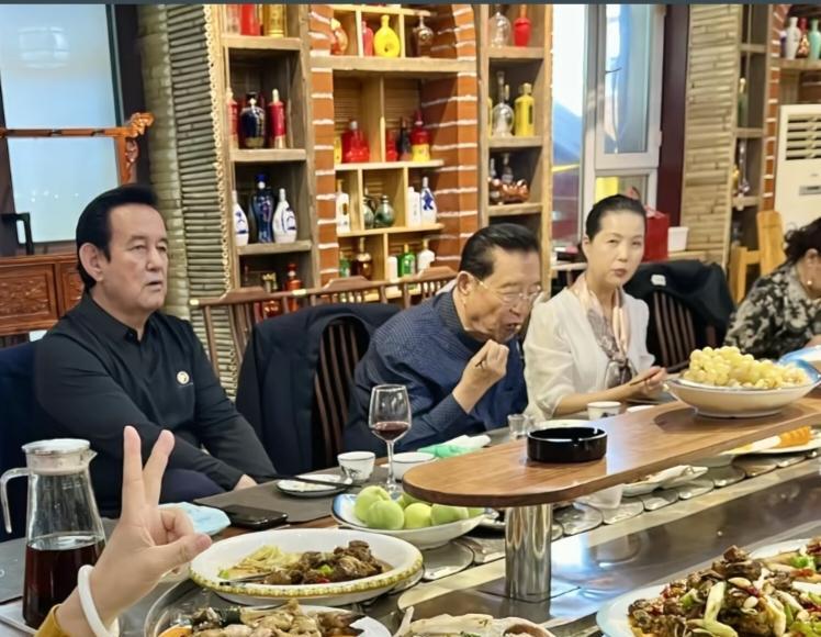 86岁李双江和老婆梦鸽现身新疆昌吉市羊头村,受到当地餐饮老板的热烈欢迎,好多干部陪同他一起吃饭,准备了满满一大桌好菜,排面非常大! 李双江看起来精神状态非常好,打扮光鲜亮丽,外表显年轻,看着和比他小28岁的梦鸽像同龄人。 他和梦鸽感情真好,在心形长凳上拍合照秀恩爱,看起来好甜蜜。 虽然因为儿子的事,李双江晚年名声不太好,但完全不影响他的生活,依然过得潇洒自在。