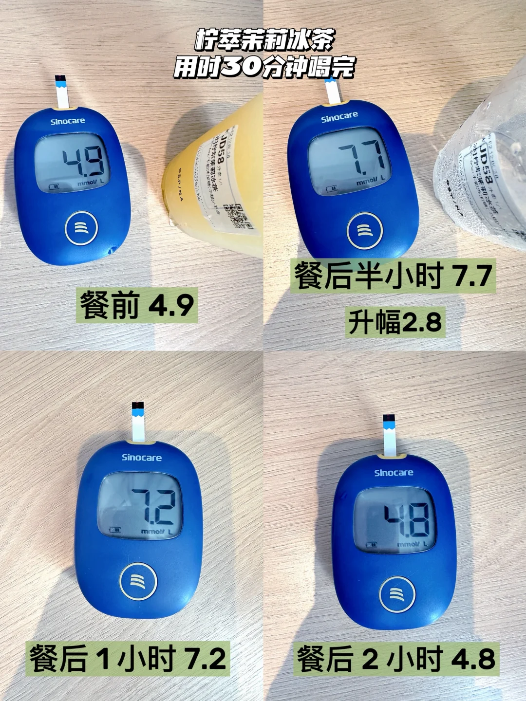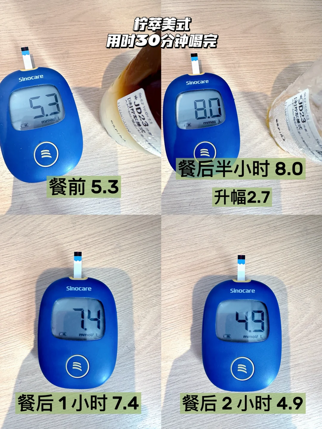 这两杯柠萃糖量都不算低,升糖都有点偏高哦,如果可以放慢速度喝,升糖还会平稳一些〰️