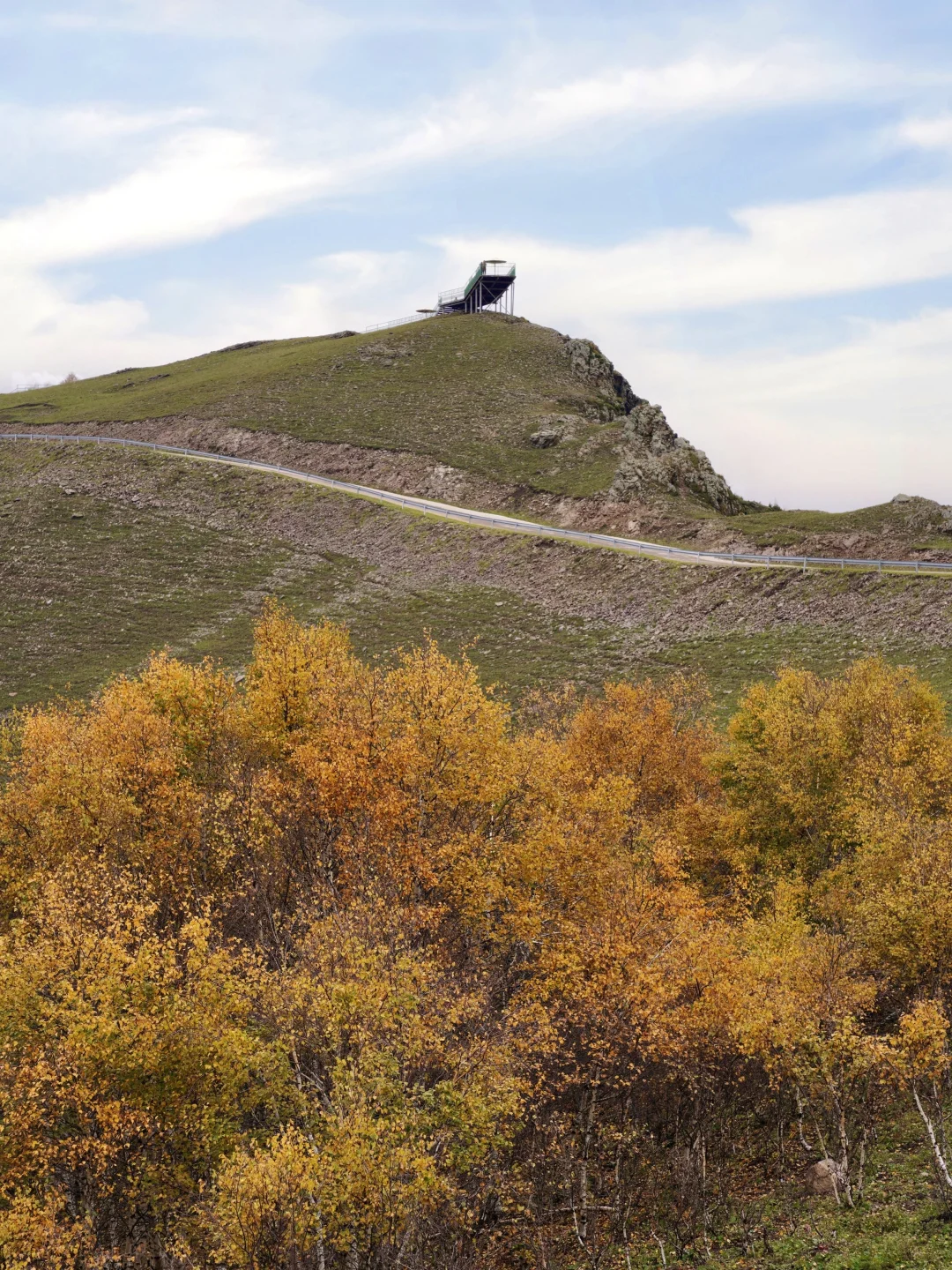 黄绿相间的秋色铺陈开来。这是一条蜿蜒于平均海拔1982米山巅的自驾线路,一路自驾山岳、森林、草原、湿地、农田、牛羊等秋色美景,周末两天就可以游玩的小众打卡地