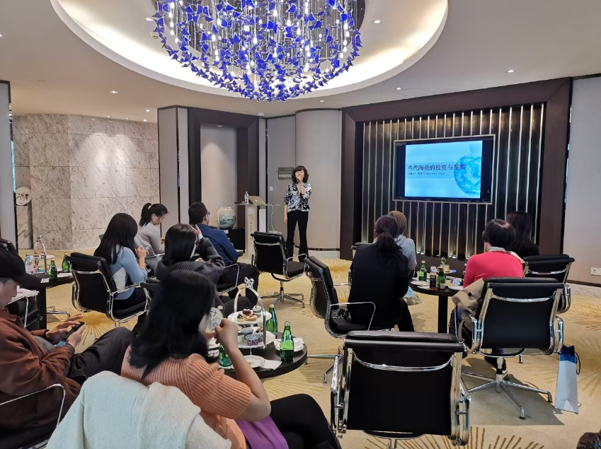 “很多人逛景德镇,买的是10元3串的低温陶瓷,却不知道高温瓷的妙处。”这让熊景兰决心成为陶瓷文化的“翻译官”。十三年来,她在上海创办展馆,举办“璟通讲坛”,不仅自己进行陶瓷的科普讲解,还邀请白磊、白明、熊开波、孙良、谭根雄、裴满意等名家进行公益讲座,从史前彩陶与世界文明讲到当代陶瓷的东方美学,传播独属于中国的陶瓷文化。