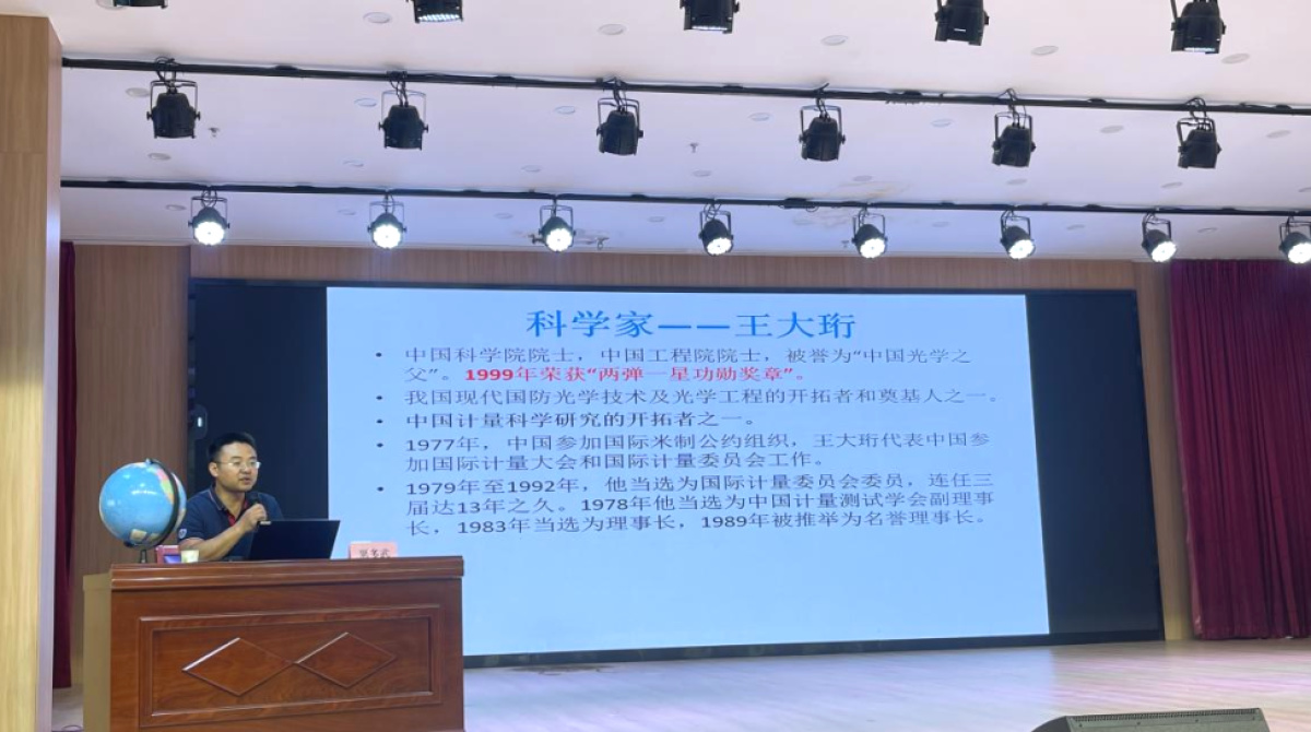 讲座伊始,粟多武以王大珩院士的事迹切入。这位“中国光学之父”既是“两弹一星”功勋奖章获得者,也是中国计量科学研究的开拓者。王大珩院士的人生,就是“热爱祖国、勇于登攀”的生动注解。
