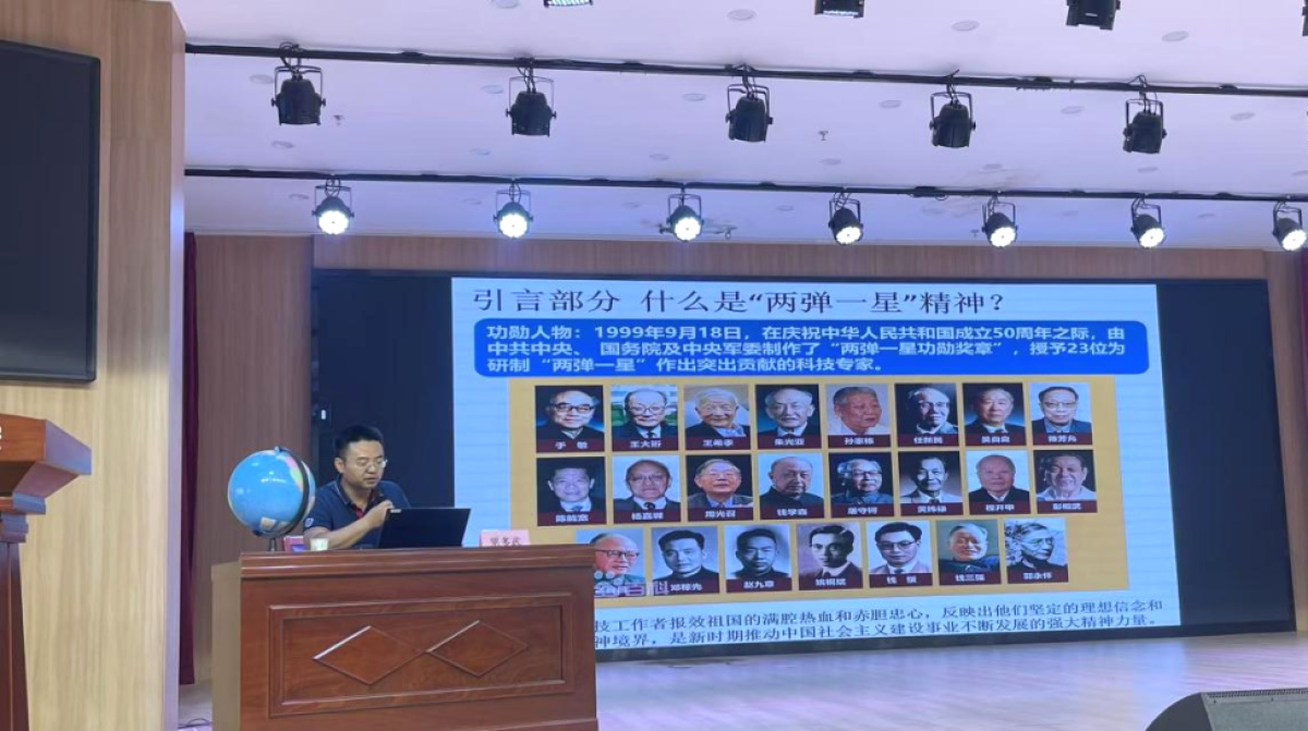 粟多武以“两弹一星”精神为核心,带领同学们回溯了那段波澜壮阔的科技奋斗史。他提到:“两弹一星”是新中国伟大成就的象征,更是中华民族自力更生、团结协作的缩影。通过讲述科学家的感人事迹,同学们深刻体会到“热爱祖国、无私奉献”“自力更生、艰苦奋斗”“大力协同、勇于登攀”的精神内涵。他强调:“这些精神不仅是历史的财富,更是当代青少年成长路上不可或缺的指引。”