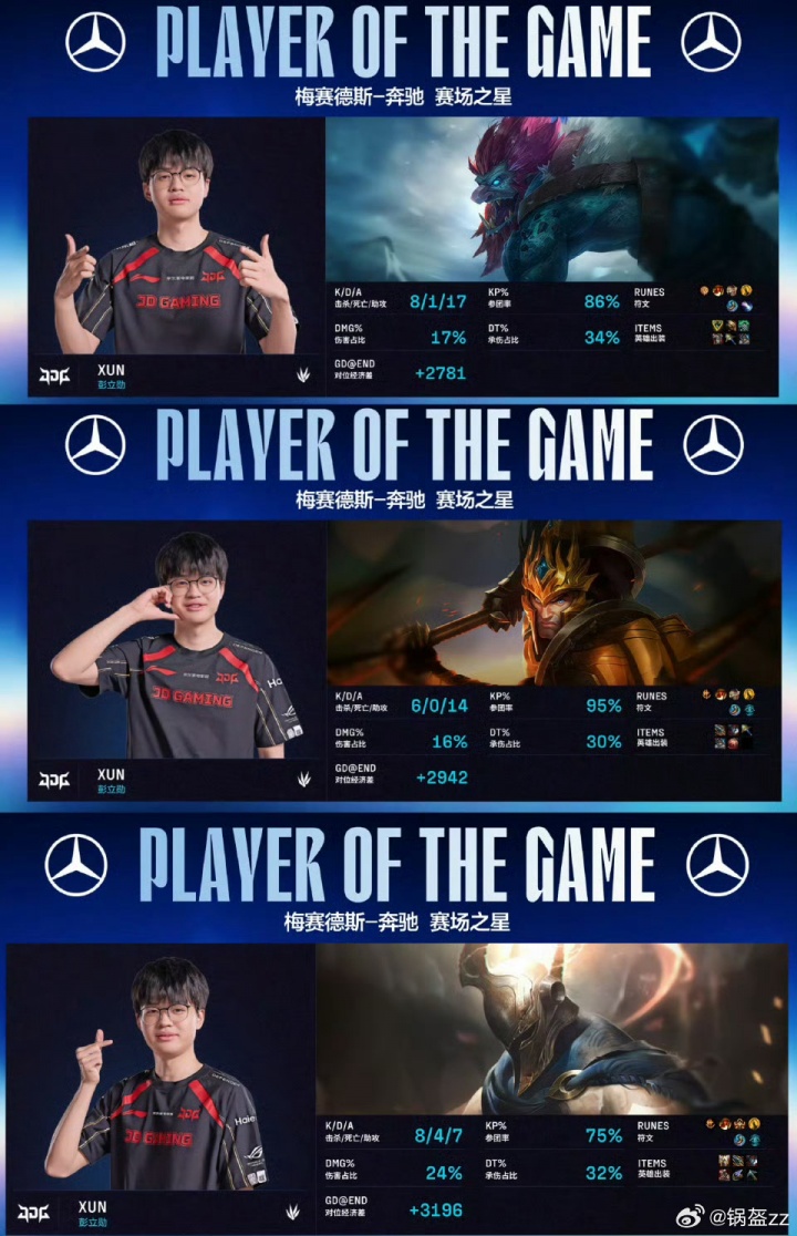 Xun选手状态巨好,拿下三连MVP,对此前iG经理锅盔表示:明天有得好看的!