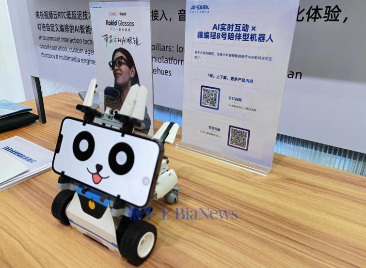 在云栖大会计算馆的视频云展区,猿编程“小8”作为AI教育代表案例展出