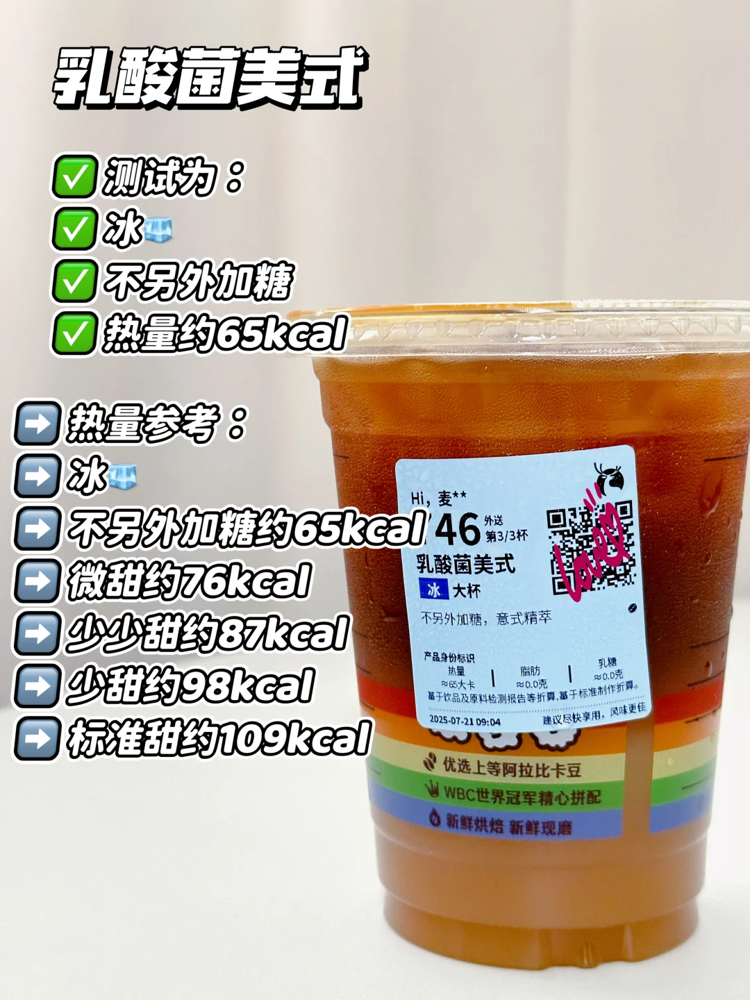测试为:冰🧊不另外加糖 热量约65kcal