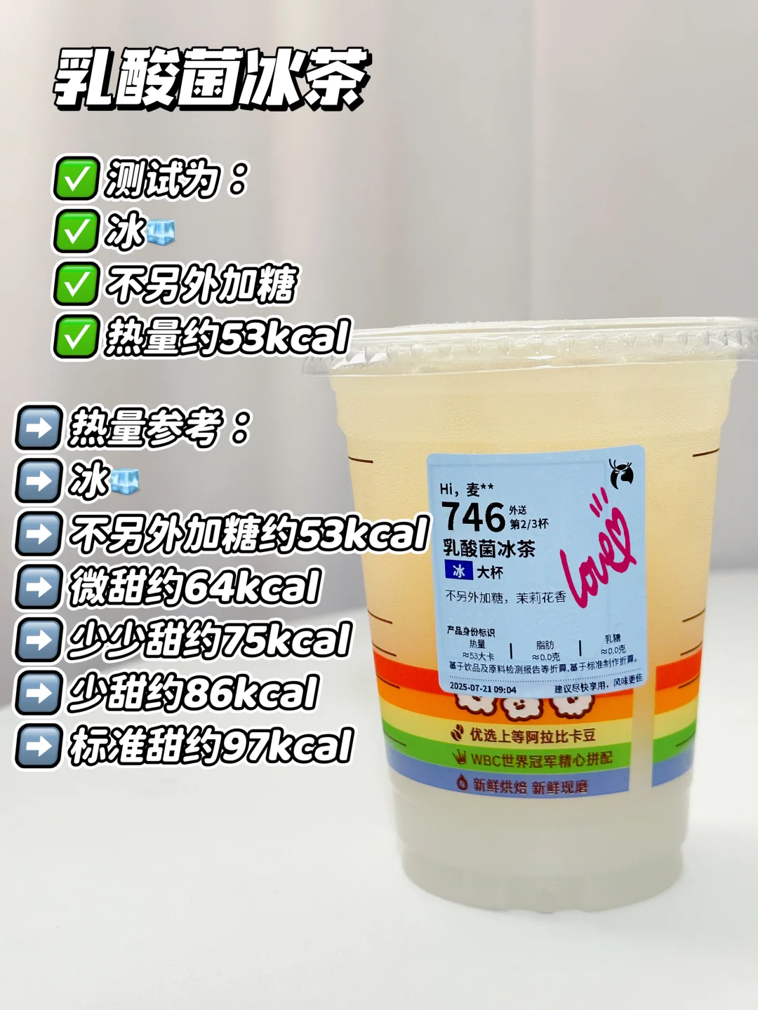 测试为:冰🧊不另外加糖 热量约53kcal