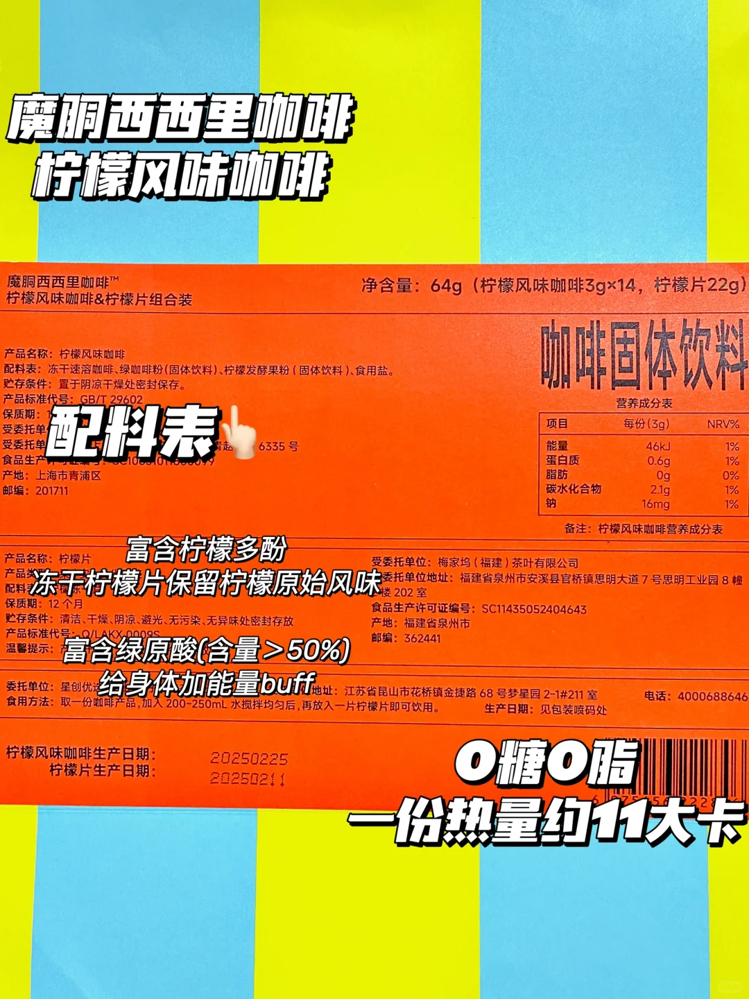 富含柠檬多酚和绿原酸,不含蔗糖也不含代糖,0脂肪〰️测试一份3g,热量约11大卡。