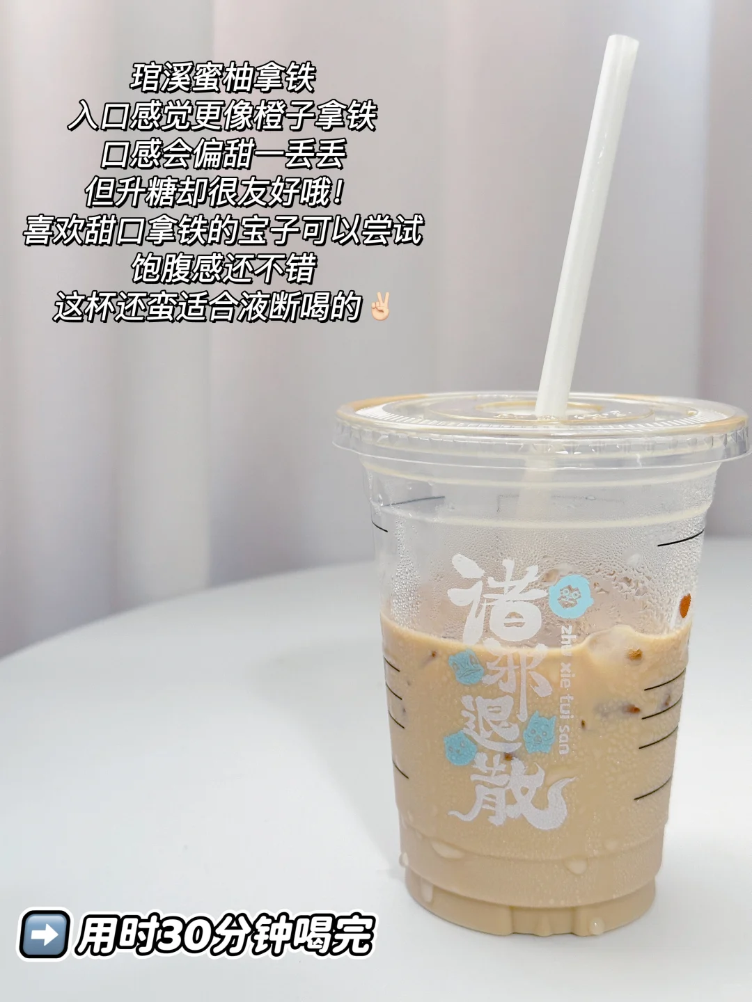 琯溪蜜柚拿铁,入口感觉更像橙子拿铁,口感会偏甜一丢丢,但升糖却很友好哦!