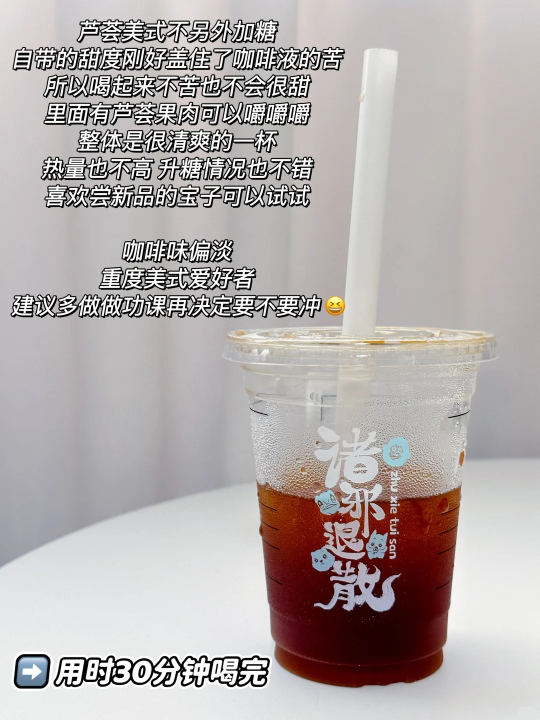 芦荟美式不另外加糖,自带的甜度刚好盖住了咖啡液的苦,所以喝起来不苦也不会很甜〰️里面有芦荟果肉可以嚼嚼嚼,整体是很清爽的一杯,热量也不高,升糖情况也不错,喜欢尝新品的宝子可以试试[耶R]