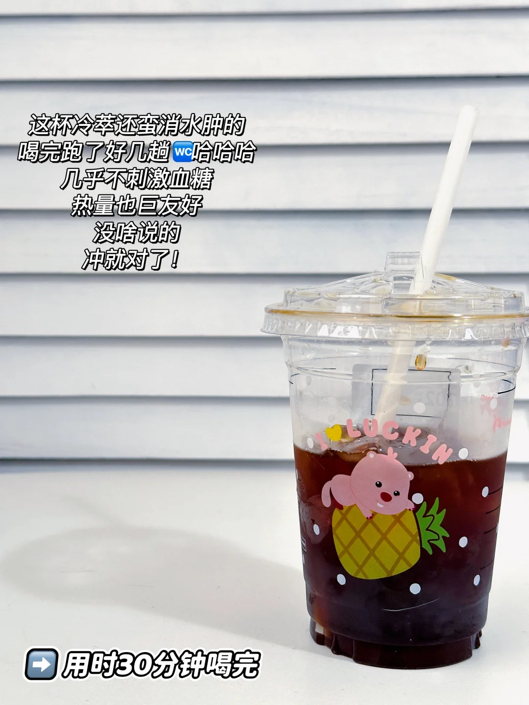 这杯冷萃还蛮消水肿的,喝完跑了好几趟🚾哈哈哈〰️几乎不刺激血糖,热量也巨友好,没啥说的,冲就对了!