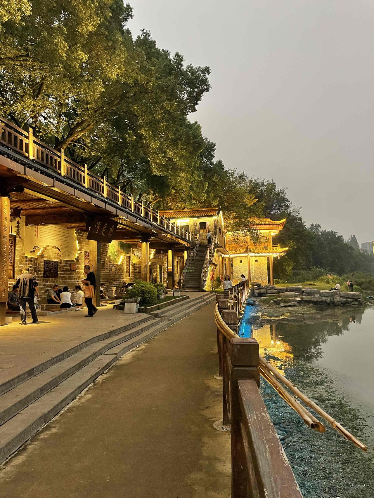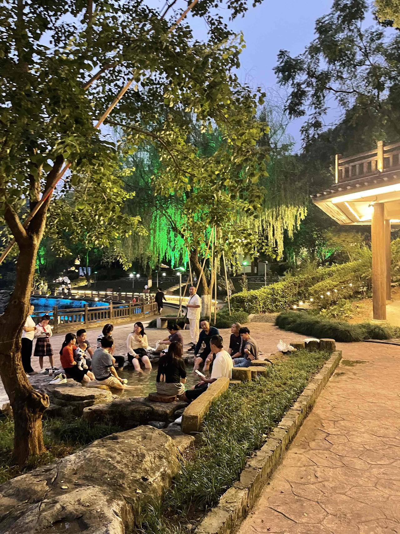 为了赏桂,也为了躲避十一长假的人流,我特意选在黄金周之前,于9月22日出发,来到素有“中国桂花之乡”美誉的咸宁。 一出高铁站就意识来早了,一路上没有闻到桂花香,9月22日—24日在咸宁仅看到了个别树挂上了花苞。 赏桂尚早,就在这个城市逛逛吧。在去潜山森林公园的路上,经过月亮湾时,我发现了一个免费温泉泡脚的地方,市民和少量的游客悠然自得的享受着温泉泡脚。不远处还有泡池,泡澡的多是当地的长者。