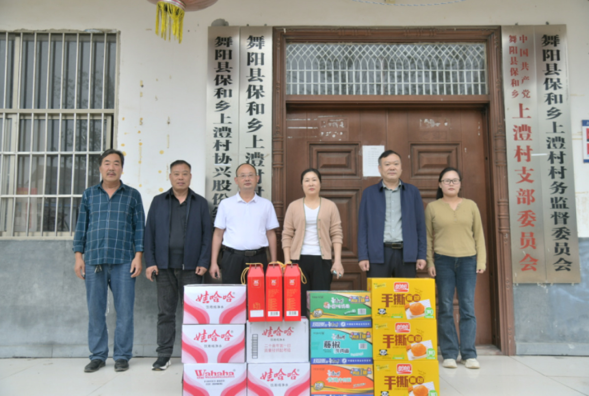 9月28日下午,漯河市舞阳县委宣传部常务副部长张敏一行深入结对帮扶的保和乡上澧村、大张村、杨树郭村,看望慰问坚守在“三秋”生产一线的村干部和值守人员,并送去纯净水、方便面、火腿肠、面包等慰问物资。