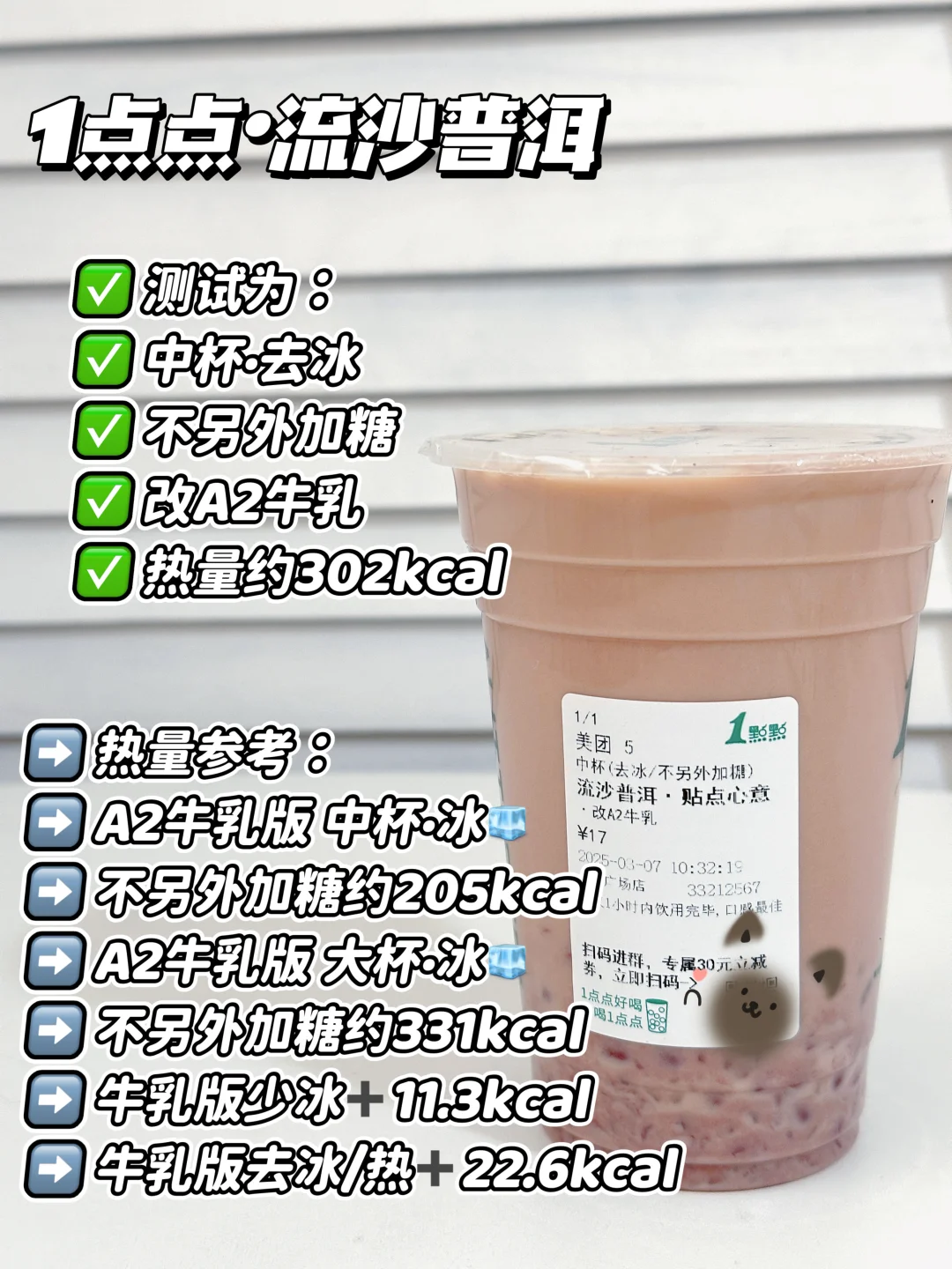 去冰 不另外加糖 改A2牛乳 热量约302kcal