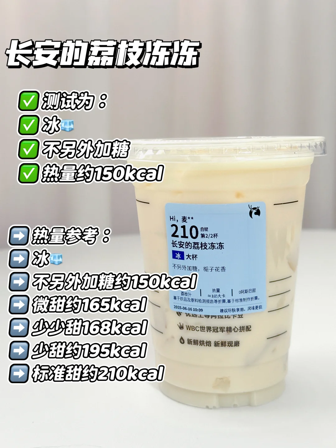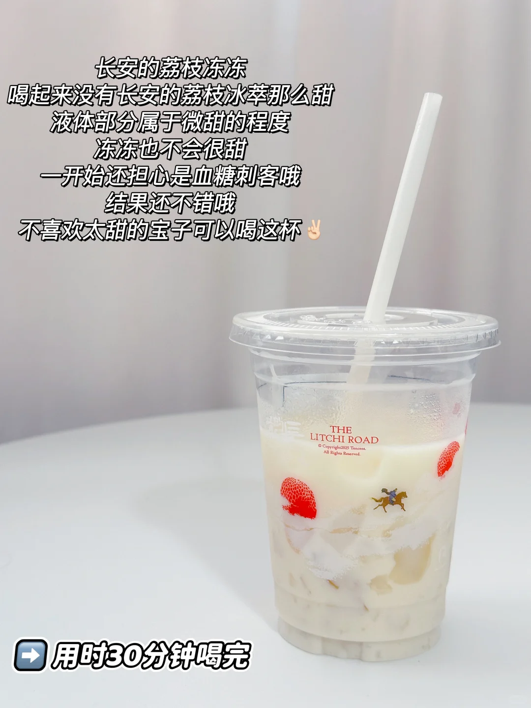 长安的荔枝冻冻,喝起来没有长安的荔枝冰萃那么甜,液体部分属于微甜的程度,冻冻也不会很甜〰️一开始还担心是血糖刺客哦,结果还不错哦[okR]不喜欢太甜的宝子可以喝这杯[耶R]
