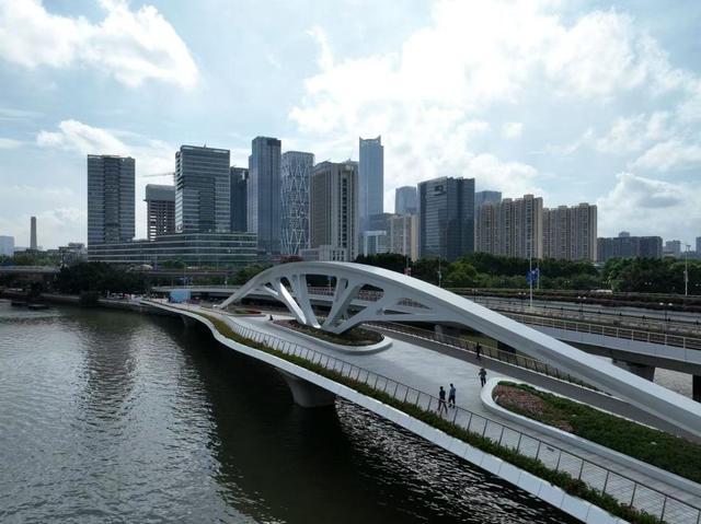 黄埔涌步行桥的投用,为广州城市发展注入新动能。其有效打通广州大桥南至猎德大桥南滨水段的慢行断点,显著提升区域通行效率,让“15分钟滨水生活圈”从蓝图变为现实。同时,进一步完善了广州城市慢行系统网络,推动珠江沿岸公共空间实现互联互通。这座承载着技术创新与文化记忆的桥梁,与海心桥在珠江上遥相呼应,共同为广州建设世界级滨水活力区、打造国际一流城市形象添砖加瓦。