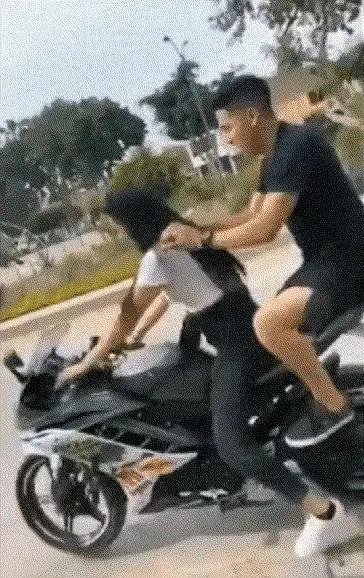 以为是个王者没想到是个青铜!一女子骑着酷酷的摩托车后面坐了一个小伙,不知道两人是要表演什么,只见男子不停在后面大力掰扯着女子,让人意想不到的一幕发生了! 女子在后座男子的大力拉扯下终于成功地让两个人演绎了一下什么叫做车翻人仰! 难道那些骑摩托车炫技的都是靠背后有人拉扯才能把车头翘起来吗? 技艺不精,就不应该作出这种炫技的事情,铁疙瘩和地面的撞击让血肉包裹的人去承受这些无妄之灾。 何苦呢? 大家见过这么菜的摩托车骑手吗? 这就叫帅不过三秒! #搞笑# #搞笑段子# #娱乐# #开心#