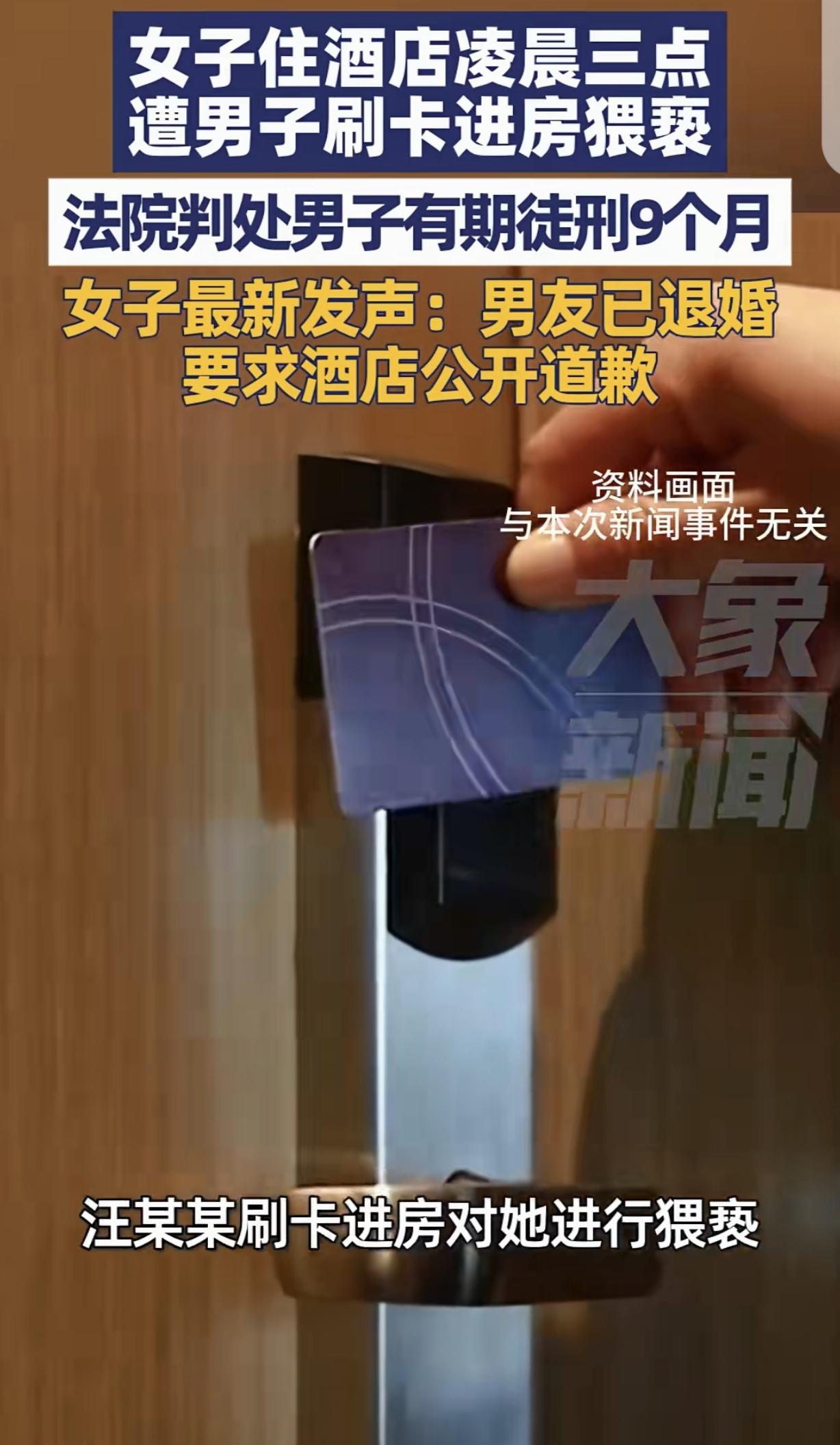 安徽蚌埠,一女子和闺蜜在KTV喝完酒,凌晨一点多入住酒店,万万没想到,睡到3点45分,一男子突然刷卡进来,直接脱了衣服扑到她床上,女子赶紧反抗,并警告男子,他如果不住手就报警,男子却说:你报啊!闺蜜惊醒,怒斥男子:你再不出去,我告诉你女朋友!男子这才骂骂咧咧离开。女子愤怒的报了警,男子被判刑9个月,女子的未婚夫说她被侵犯了,不干净了,直接退了婚姻,女子得知男子是在前台拿的房卡进入她房间的,跟酒店索赔几十万,而酒店的做法让女子崩溃。 2025年4月23日,陈女士闲来无事,收到了蚌埠闺蜜的邀请,让她去小住几天。 陈女士欣然前往,当晚,他和闺蜜吃了晚饭,一起吃饭的,还有一个叫汪某某的男子。 这个汪某某是陈女士闺蜜大哥的朋友,陈女士和他2年前就认识了,吃过几顿饭,虽然不是很熟,但也不陌生,说是朋友也不为过。 吃完饭后,看天色尚早,几个人就决定去KTV狂欢,一直玩到一点多,陈女士和闺蜜,入住了一家高端酒店。 酒店是朋友定的,环境和服务都很好,因为玩的有点晚,陈女士有些累了,她简单洗漱后就和闺蜜一人一张床睡下了。 睡到凌晨3点45分,陈女士可能冷丁一换地方,睡的不是很沉,她突然被房卡刷门的声音惊醒,而此时,闺蜜睡的正香。 正在陈女士以为自己听错了时,突然,一个男子闯了进来,陈女士吓得不轻,他以为男子走错房间了,但他却能用房卡刷开了门。 陈女士赶紧坐了起来,正在她惊魂未定时,男子打开了灯,然后三下五除二就把衣服脱了,一个饿虎扑食,直接奔着陈女士就来了。 而此时陈女士也认出了男子,他不是别人,就是和她们一起吃饭K歌的汪某某。 汪某某对着陈女士就开始上下其手,陈女士明白了,对方不是喝多了,也不是走错房间,他就是奔自己来的。 她早就发现这个汪某某对自己不怀好意,没想到,他胆子这么大,闺蜜还睡在旁边的床上,他竟然如此胆大妄为。 陈女士一边挣扎一边呵斥汪某某,想以报警吓退他,但他却满不在乎的说:你报呀! 陈女士一看,趁机跑到闺蜜床上,把睡的很沉的她叫醒了,闺蜜大声斥责汪某某,如果他再不滚,就告诉他女朋友。 汪某某顿时蔫头耷拉脑,骂骂咧咧的穿上衣服走了。 惊魂未定的陈女士报了警,汪某某也受到了应有的惩罚,因强制猥亵被判刑9个月。 但这件事还没完,陈女士的未婚夫一口咬定她被侵犯了,直接跟她解除婚约,让她受到了很大的伤害,同时不明真相的人也对她说三道四让她名誉受损。 陈女士觉得这事不能就这么算了,她质疑汪某某为什么有她房间的房卡?怎么能轻而易举就这么进入她房间? 最后,陈女士得知,是酒店前台给的汪某某房卡,她怒了,开口就跟酒店索赔几十万。 酒店觉得自己很委屈,因为一开始前台拒绝给汪某某房卡,但汪某某说他担心陈女士喝多了出事,而汪某某又找到开房的那个朋友,还有酒店前台经理说情,因为3人是朋友关系,所以前台才同意给的房卡。 而酒店之所以没征求陈女士和闺蜜的意见,是觉得他们都是朋友,而且,陈女士两人都喝多了。 所以,酒店只同意免费让陈女士吃住几天,弥补一下她的损失,其他要求免谈。 陈女士拒绝酒店的赔偿方案,决定走法律程序维护自己的合法权益。 《刑法》第237条第1款规定:以暴力、胁迫或者其他方法强制猥亵他人或者侮辱妇女的,处五年以下有期徒刑或者拘役。 汪某某通过酒店前台获取陈女士房间的房卡,凌晨闯入其房间并实施猥亵。其行为符合“以其他方法强制猥亵”的客观要件:利用非法获取的房卡强行侵入私密空间;明知陈女士不同意仍实施猥亵行为。 法院判决已认定汪某某构成强制猥亵罪,判处有期徒刑9个月,印证了其行为符合本条款。 汪某某认罪认罚且未造成更严重后果,法院判决9个月有期徒刑符合“情节较轻”的量刑标准,法定刑期下限为拘役或5年以下有期徒刑。 《民法典》第1198条规定:宾馆、商场、银行、车站、机场、体育场馆、娱乐场所等经营场所、公共场所的经营者、管理者或者群众性活动的组织者,未尽到安全保障义务,造成他人损害的,应当承担侵权责任。 未尽安全保障义务:酒店前台在未核实汪某某身份、未联系入住人确认的情况下,仅凭其口头表述“朋友醉酒害怕出事”即提供房卡,违反酒店行业安全管理规范,直接导致陈女士遭受侵害。 汪某某作为直接侵权人已承担刑事责任,但酒店因管理疏漏需对陈女士的民事损害,人身伤害、精神损害等,承担补充赔偿责任。 酒店主张“汪某某通过朋友和经理说情”不能免除其法定安全保障义务,内部人际关系不影响对外责任的认定。 酒店仅提供免费食住的补偿方案显失公平。陈女士主张的精神损害赔偿,名誉损害、未婚夫退婚等后果,可依据《民法典》第1183条主张,酒店需按过错比例承担赔偿责任。 关注@灋律盐究员 学法辩是非,用法止纷争。