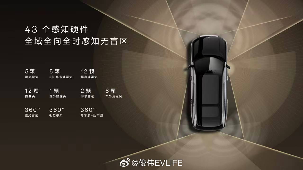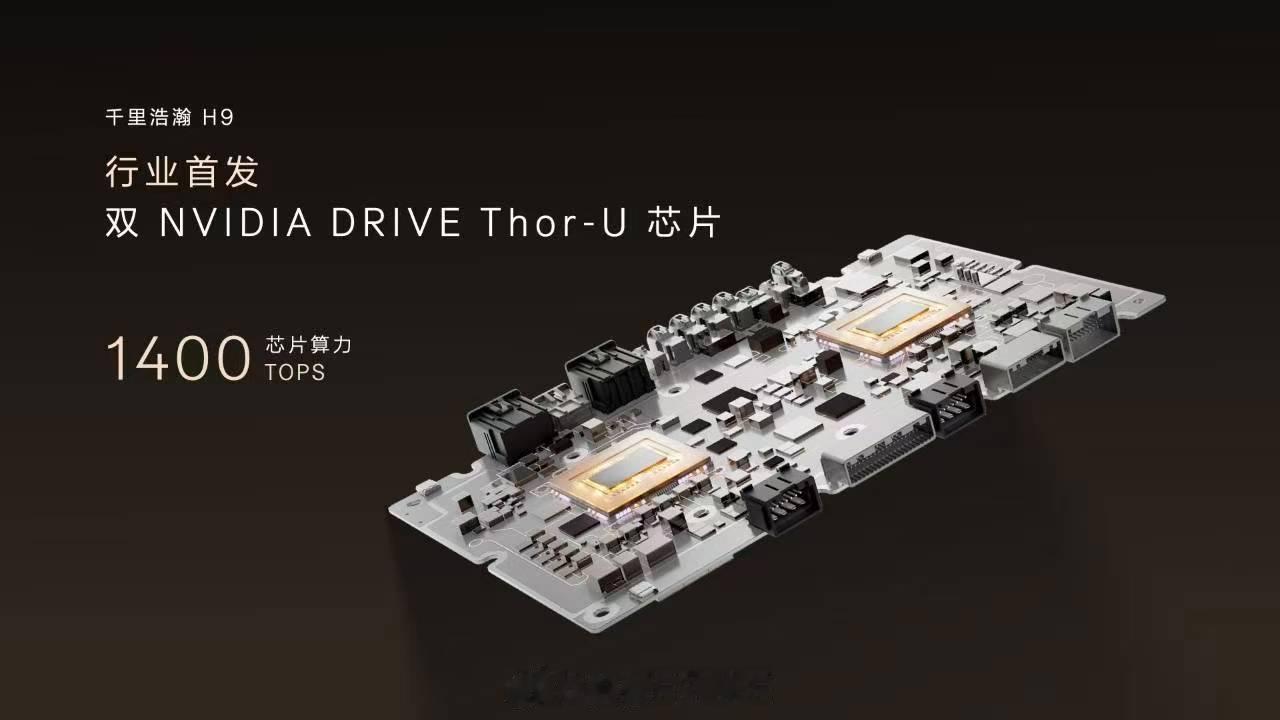 千里浩瀚H9 ,行业顶级配置,1400TOPS 双NVIDIA Thor-U芯片,43个感知硬件,360°无死角感知矩阵 ,全链路8大安全冗余,主动安全再升级。