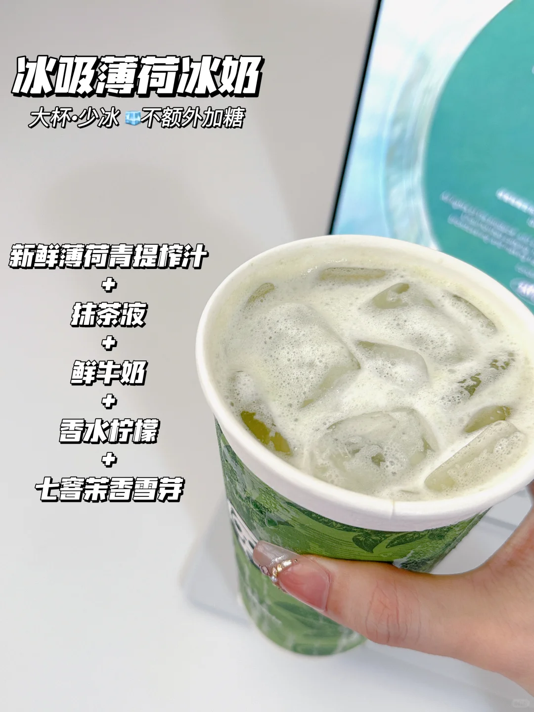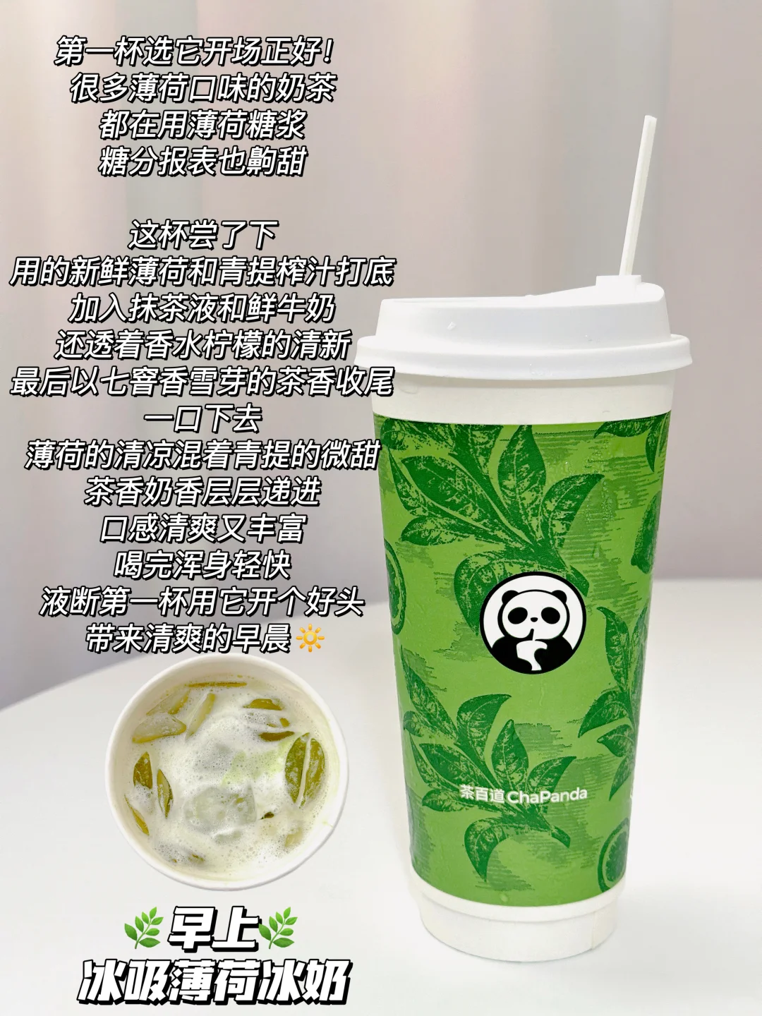 第一杯选它开场正好!因为这杯使用新鲜薄荷+抹茶液,就很适合早上提提神,整体口感不会过分冰凉但又十分清爽。用三品管慢慢喝,一个上午就过去了,不知不觉完成了早上的液断〰️