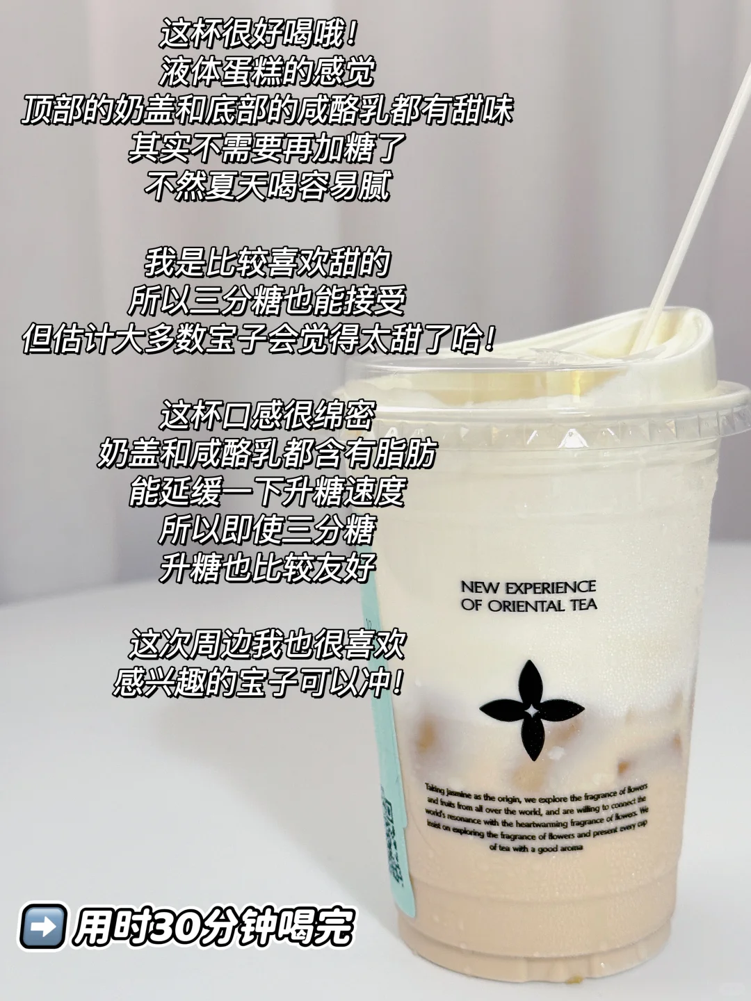 这杯很好喝哦!液体蛋糕的感觉🍰顶部的奶盖和底部的咸酪乳都有甜味,其实不需要再加糖了,不然夏天喝容易腻[扯脸H]