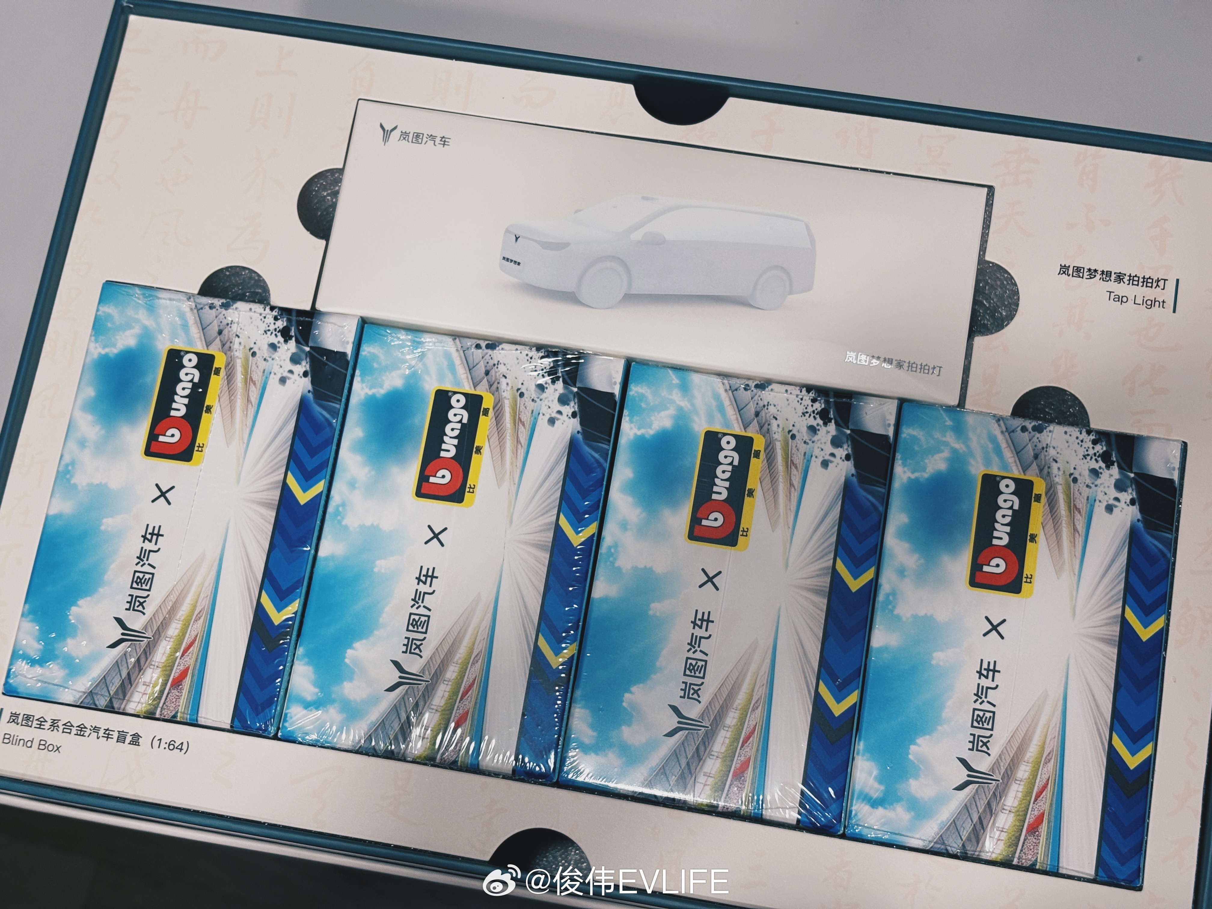 收到岚图汽车万家灯火礼盒里面有四个汽车盲盒看看能不能开到隐藏款