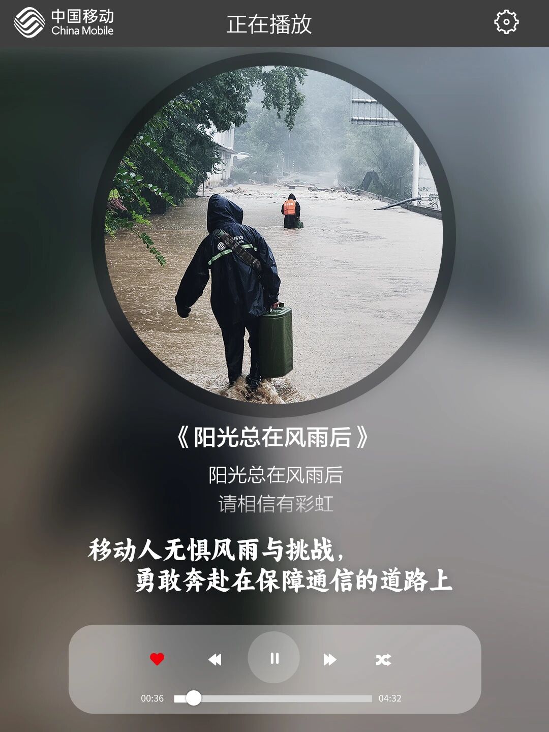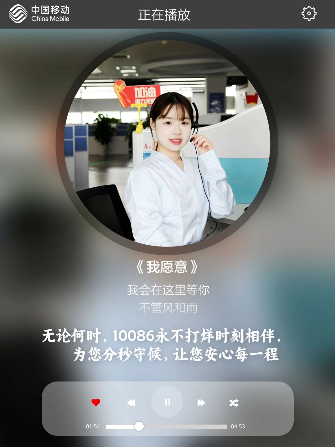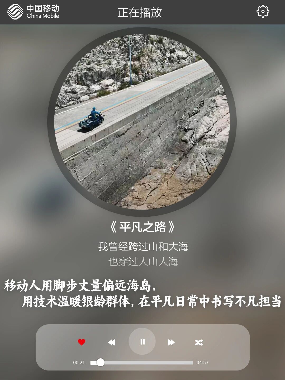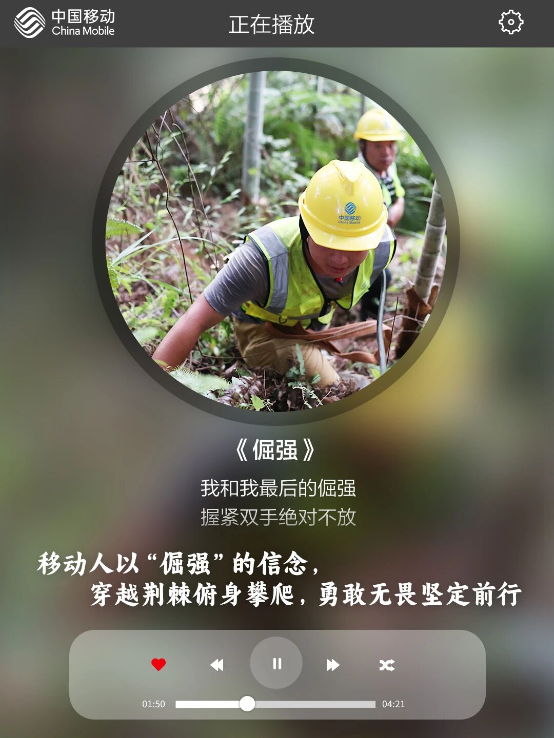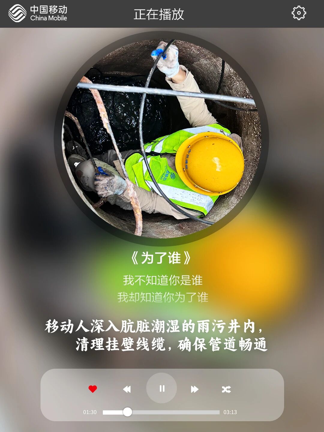 § 分你一只耳机,一起来听歌吧~ § 当移动志愿者弯腰教“银发族”扫码时 指尖在屏幕上划出温热的“五线谱” 当网络工程师在45℃烈日中拧紧基站螺丝 发烫的扳手敲打出城市“心跳的节奏” …… 他们的工作就像 “单曲循环” 但正是这日复一日的坚守 才谱写了信号满格、世界相连的赞歌 如果用一句歌词形容移动人 你觉得哪句比较贴切呢?
