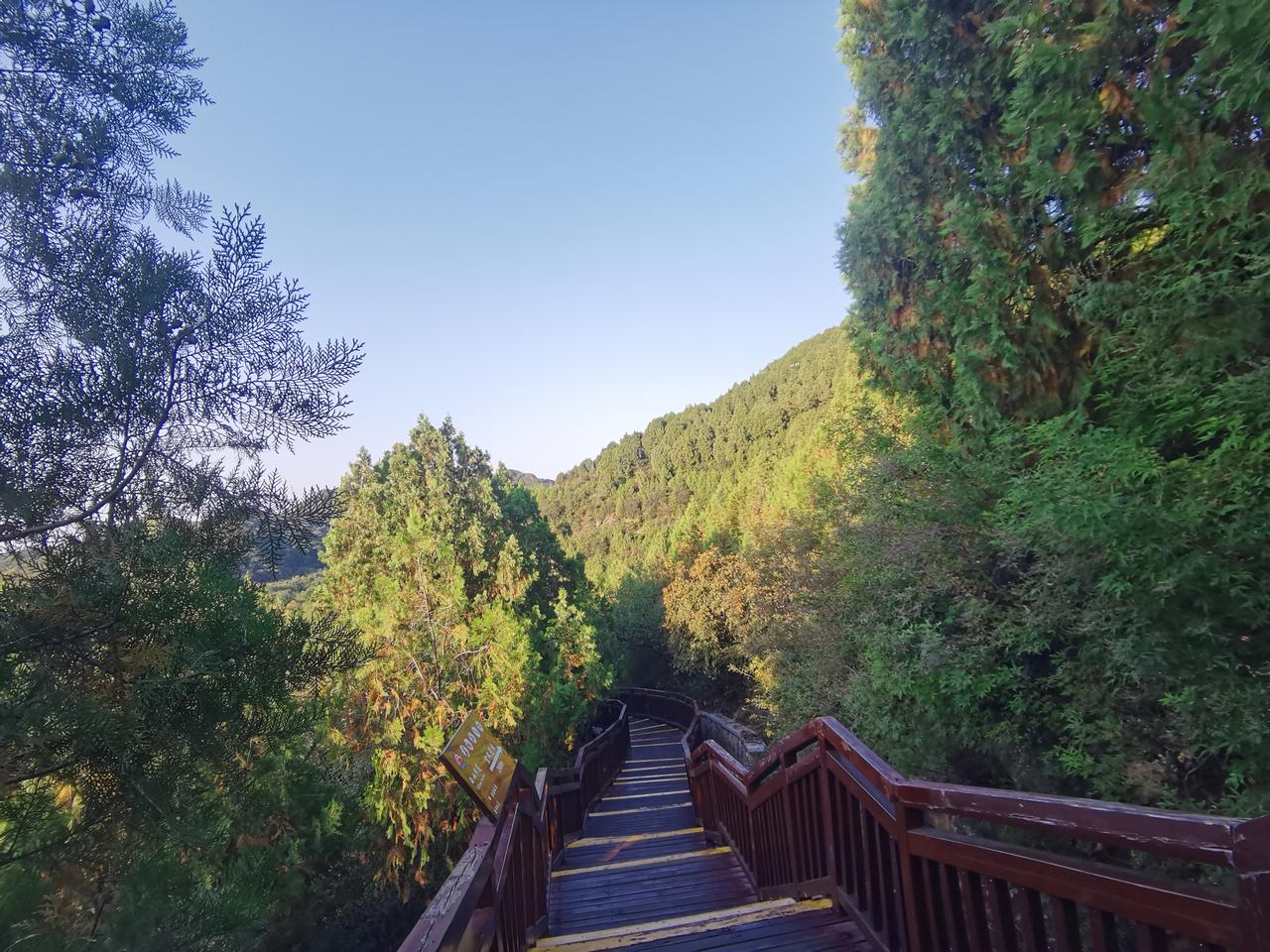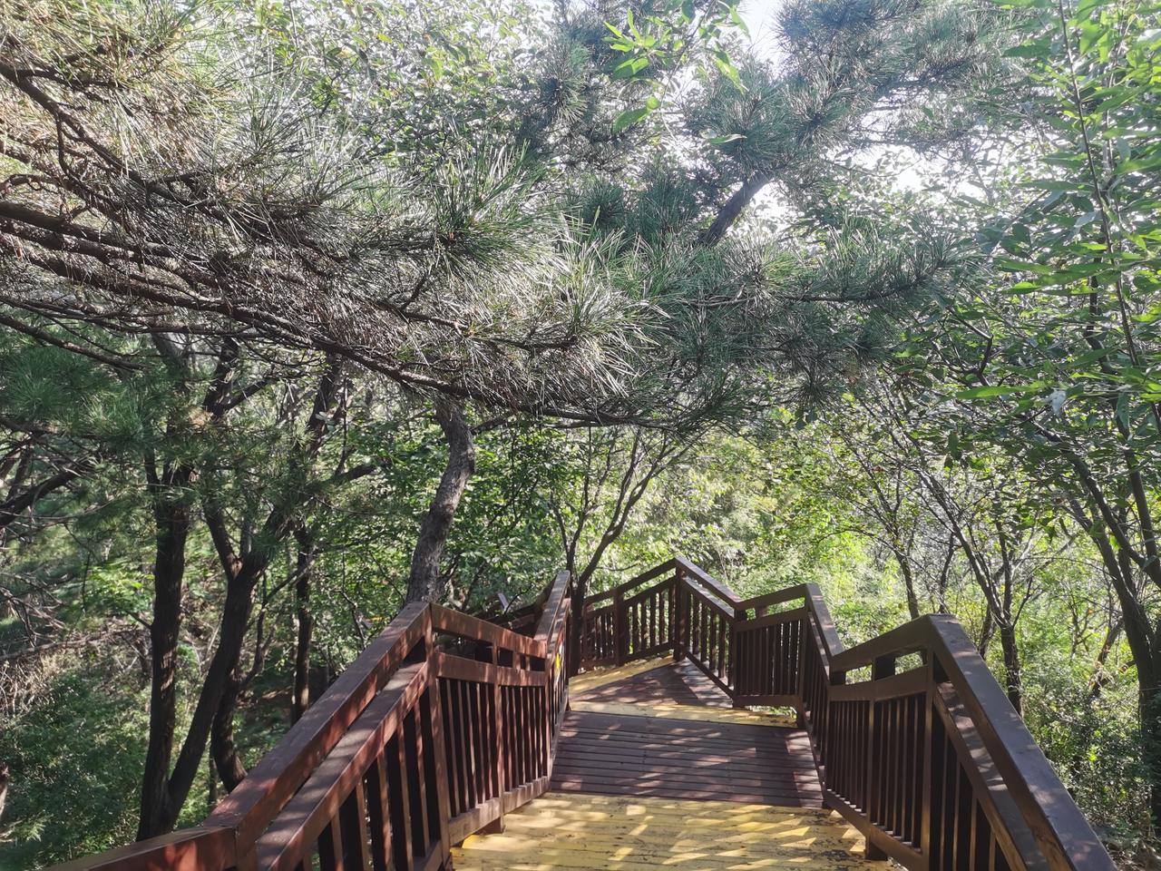 趁着早晨不堵车,七点赶到雁栖湖。这个季节的雁栖湖有一股成熟的风韵、恰似陈年的酱酒、凌霜的红叶。每一片叶子都有着熟透的厚重、丰硕与底蕴。 沿着半山腰的健身步道,漫步在芬芳馥郁的苍翠中,饱和的浓郁充盈着肺泡,令人陶醉其中,留恋难返。
