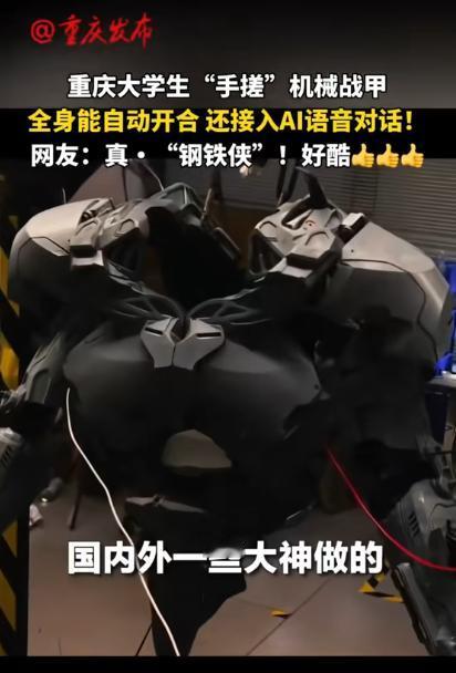 “太有才了!”重庆,一个21岁小伙子,不打游戏,不刷手机,也不看电视,除了读书外,利用空闲的时间竟然手搓了一套机械战甲,穿身上之后战甲能自动开合,还可以接入AI语音,和战甲对话!网友:“不说了,点赞吧,这是大神”。 很多大学还一放暑假就会宅在家里面玩游戏、刷视频,然而黄彦钧却不同,他将自己关起来,用整个假期加上课余时间,造出了一套全身机械战甲。 黄彦钧是重庆交通大学机械工程专业的学生,从小就喜欢研究机械,经常拆零件再装回去。就在放暑假的时候他想把自己的小时候的梦想与专业知识结合起来,做一套能够穿的机甲设备。 随后经过两月的刻苦钻研之后,他终于把这个东西给做好了,他直接做了全身装备,而不是像国外只有头盔。 更令人意想不到的是,这战甲不只是外壳。他还在上面做了一个开合的功能,穿上之后还不会出现卡卡顿的情况。此外他还自己装了一个语音系统,可以和战甲互动。比如说“贾维斯,检查机甲”,战甲就会回答“主人你好”,然后开始自检。 很多网友看到了这个视频之后纷纷在下面评论,一些爱好机甲的网友说太震惊了,这简直就是“大神”级别的啊,动动手指就能做出这样的东西很厉害,甚至还调侃说多少钱想买。 还有一些网友在下面说,她看到这个视频之后立马就转发给了自己的表弟,说表弟也在上大学,让表弟对比一下差距。 正是这种对比,让人们更佩服黄彦钧,他并不是为了出名,而是因为真心喜欢机械,愿意沉下心钻研。靠着兴趣和毅力,他完成了很多人想都不敢想的事。 亲手打造出来的这一套机甲,不仅仅代表机械层面,而是它成了一种象征,代表年轻人对热爱的执着。它也给出一个答案,别总抱怨条件不足,关键是愿不愿意去做。只要投入时间和精力,哪怕工具普通,也能做出令人惊讶的成果。 不少网友还畅想,如果未来能用更先进的材料,再加上动力系统,说不定真能像钢铁侠一样飞起来。虽然还有很远,但黄彦钧已经迈出了第一步。 他用行动证明,热爱能激发创造,努力能改变现实。对此,你还有什么看法呢? (信息来源 :重庆发布 2025-09-28)