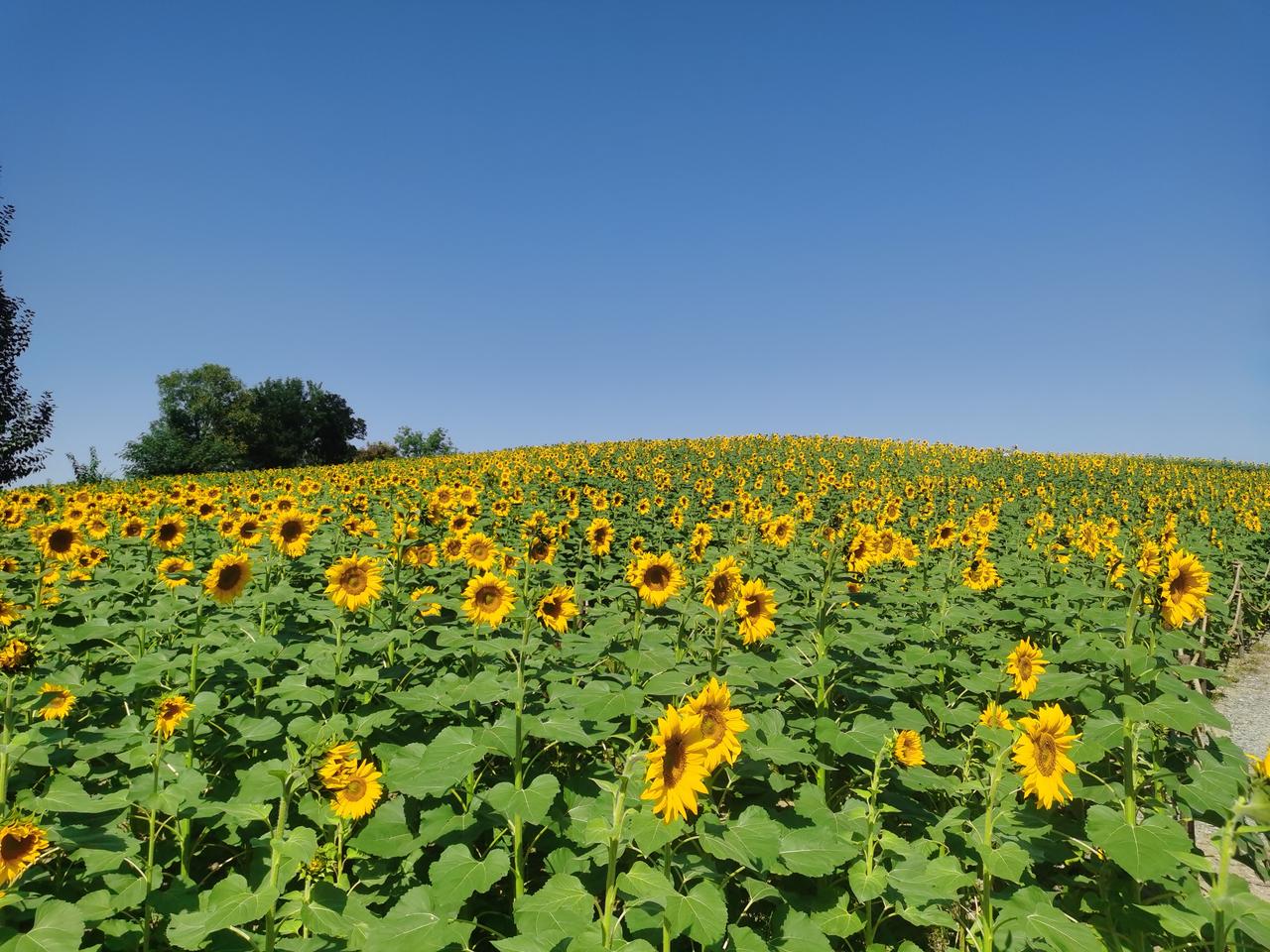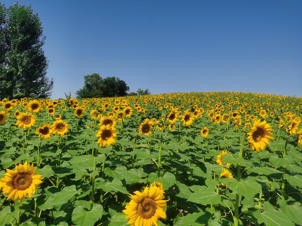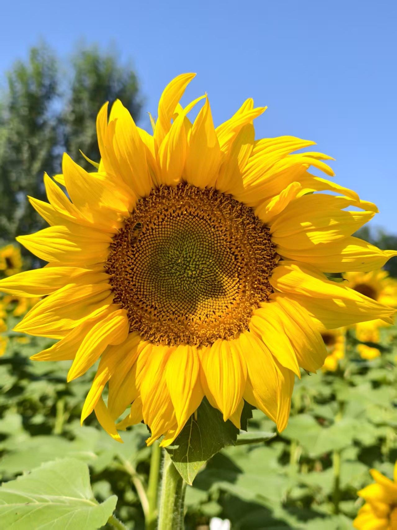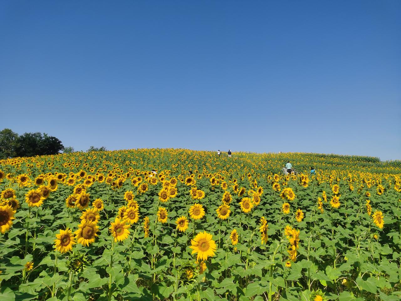 北京最大的公园,面积达30平方公里,国庆期间最大的看点,不为实际收获,只为眼球经济。 这就是温榆河公园。 正在盛开的向日葵覆盖了整个山坡。这个季节才开花的向日葵,注定不会有成熟的种子。仔细看了一下,确实不见种子。 烈日炎炎,前来赏花者络绎不绝,不过一定要做好防晒的防护。
