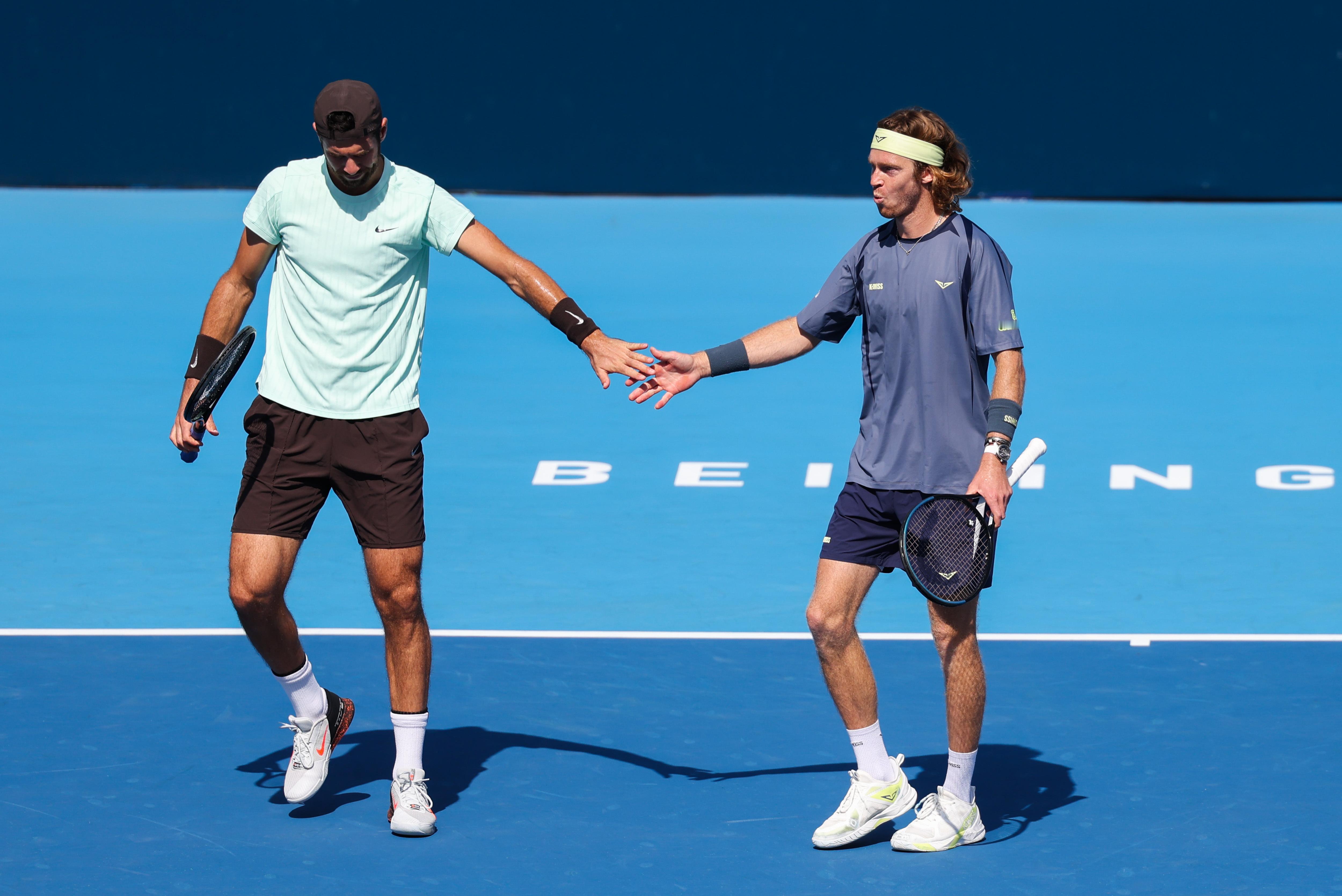 2025中网 首场男双半决赛,曾斩获“ATP最受欢迎组合”的卡恰诺夫/卢布列夫6:4/6:2击败邦齐/格里克斯普尔,率先闯入男双决赛!