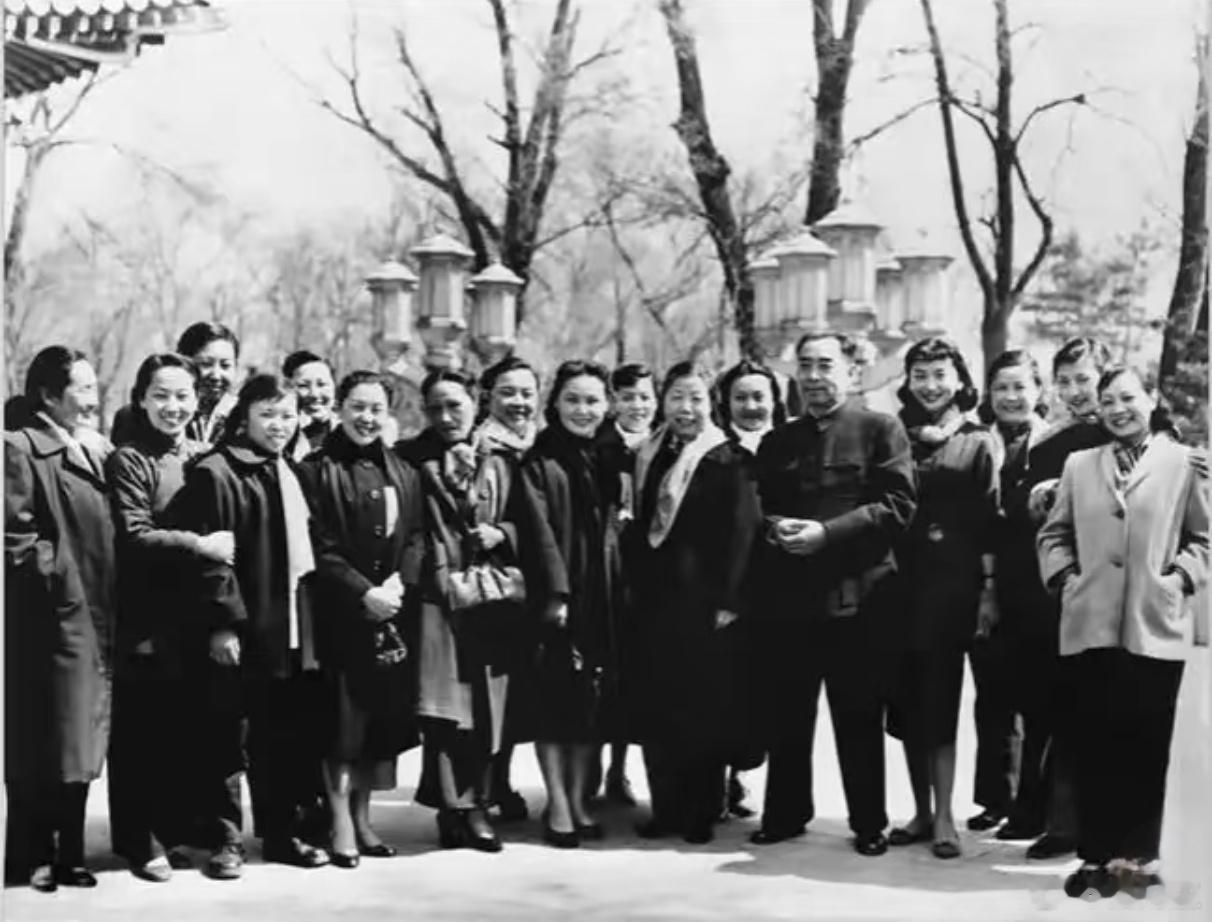 1957年4月14日“国家优秀电影发行者大会”。总理,邓颖超,夏梦等众影星一起跳舞