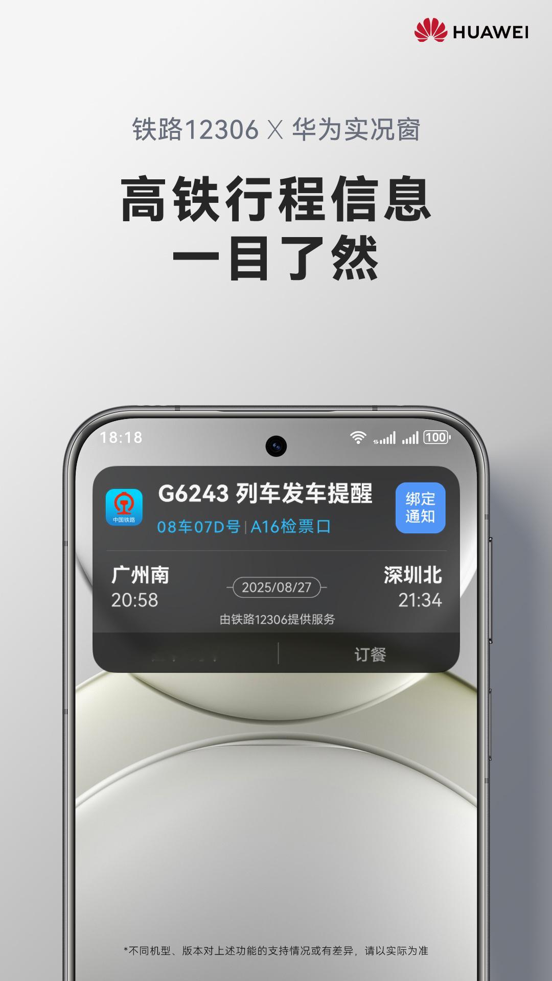这下用鸿蒙手机的朋友坐高铁动车出门方便不少,不用打开 App 也能一眼看到关键信息。