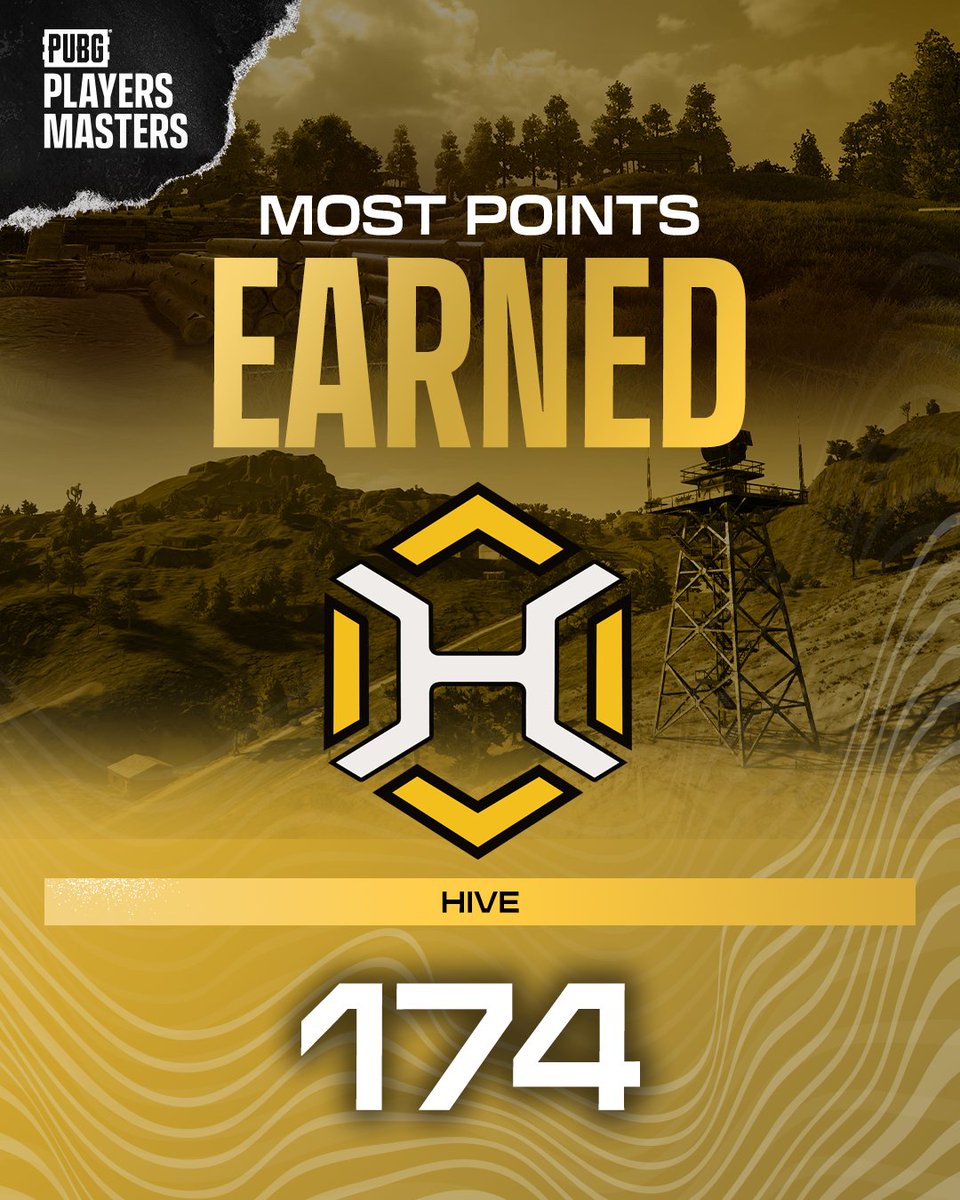 HiVE战队他们在EMEA赛区TPP大师赛中以174的积分的巨大优势统治!该战队已锁定西部大师赛总决赛席位。