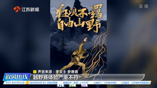 今年4月13日,杭州市的李女士参加了“2025南京越野挑战赛”,但在比赛当天凌晨,却被临时告知“因天气原因,赛事组委会启动相关应急预案,决定适时更改赛道”。李女士介绍,越野赛成了公路跑,导致跑者的越野跑鞋等装备在持续高强度的路跑中非常不适用。
