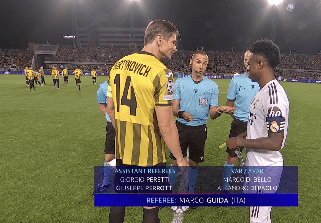 虎扑10月01日讯欧冠小组赛第2轮,皇家马德里客场对阵欧冠新军阿拉木图凯拉特。此役,维尼修斯佩戴队长袖标首发登场。