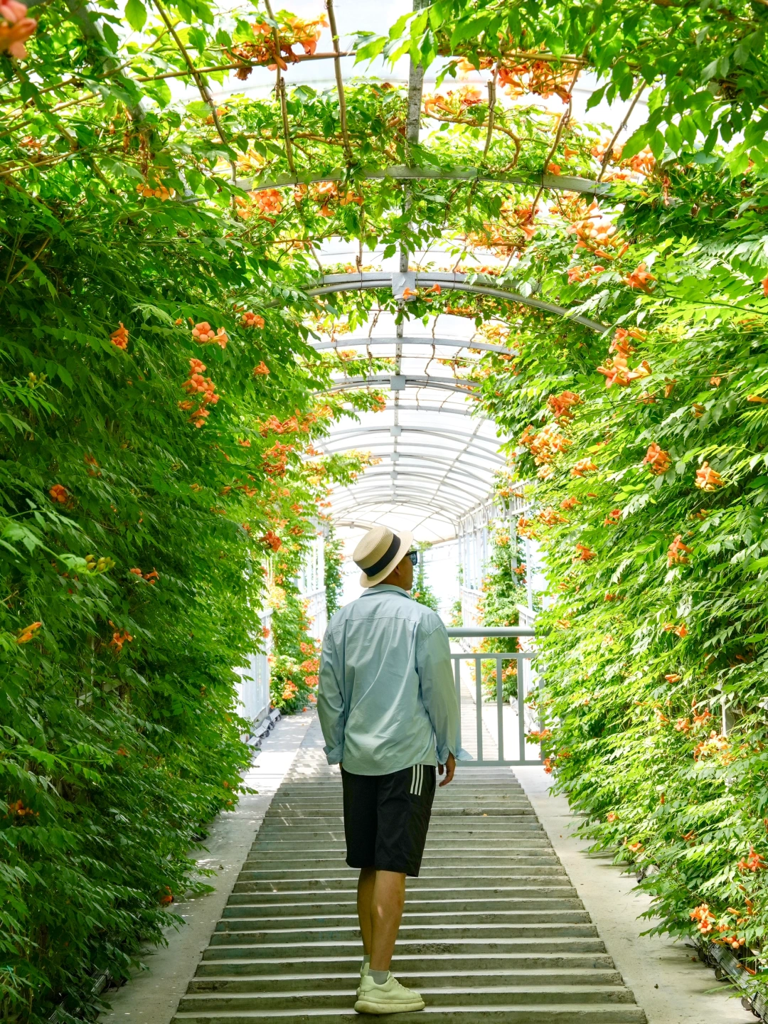 廊桥及路牌P11、18,隧道绿色花海及园区网红路牌