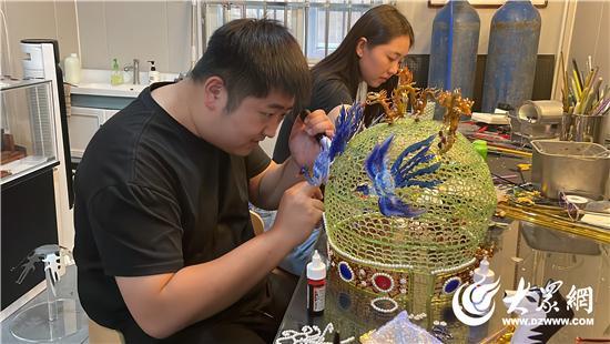那两个月,孙启烨和同伴每天在工作室工作十多个小时,轮番作战。当由9只龙、9只凤、4800粒琉璃珍珠、共5000个零部件组成的琉璃凤冠完成时,所有人都被震撼了。