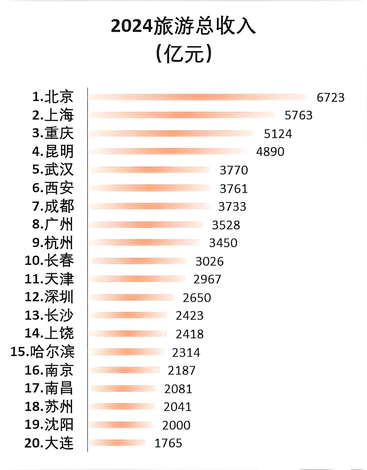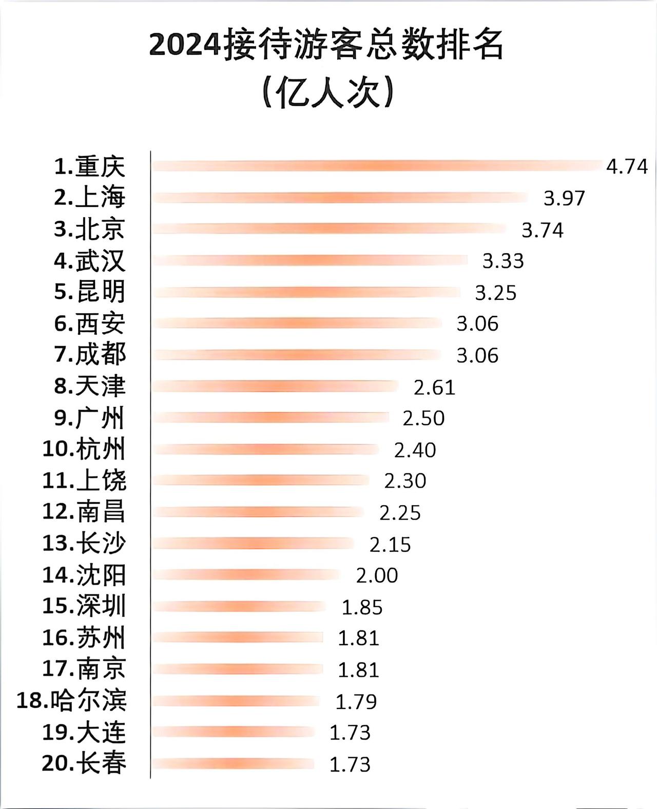 江西2座城市上榜全国20强!武汉好强呀,一直以为长沙旅游很强,网红城市,想不到与武汉的差距很大。 山东、河南、山西也是旅游大省,没有上榜的城市,这么近,那么美,周末到河北,也没上榜。吉林的长春有点意外,挺强。 江西的上饶、南昌旅游资源丰富,表现很不错,九江、宜春、赣州需要挖掘旅游潜力。