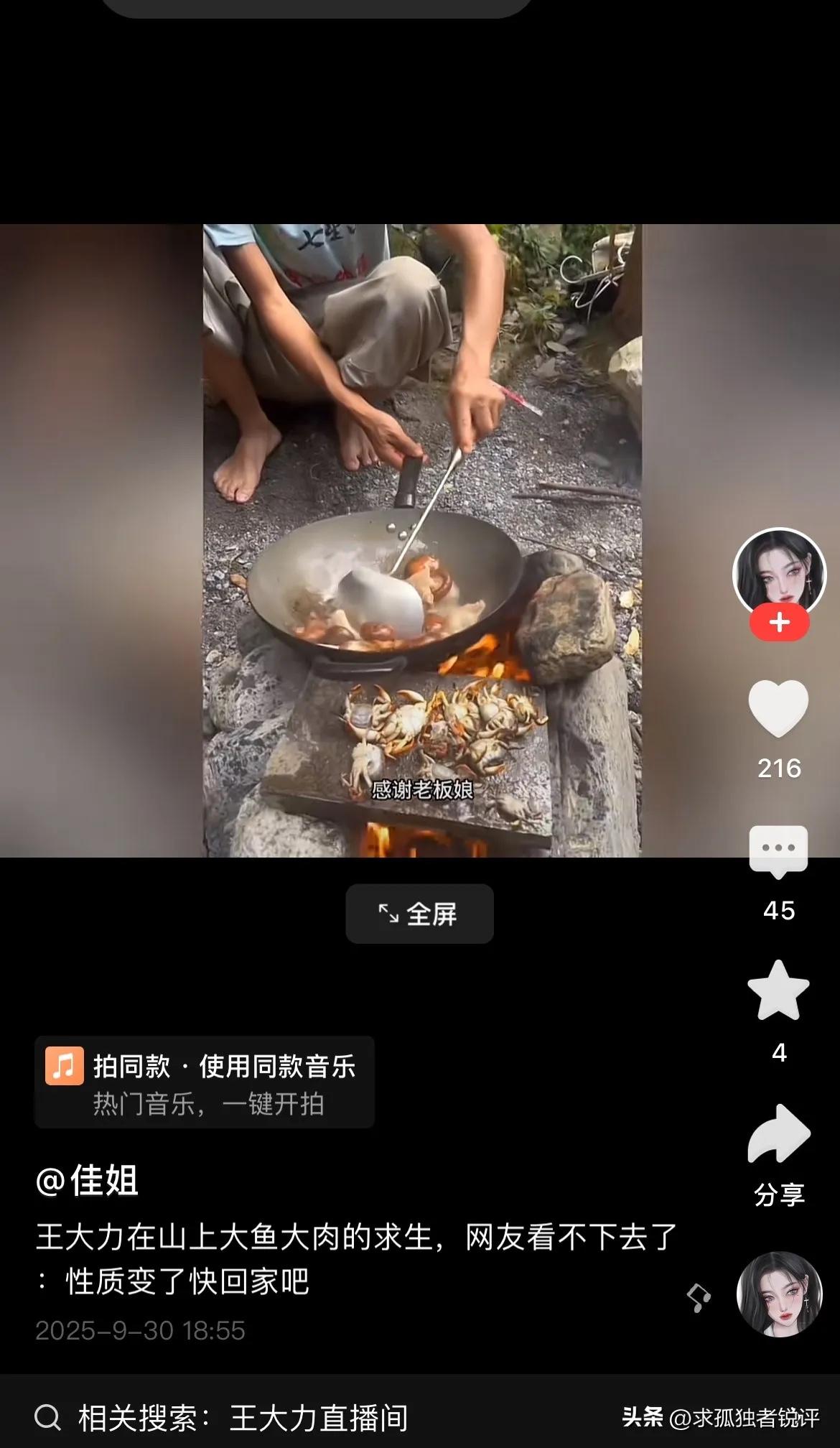 对于七星山杯荒野求生亚军王大力来说,荒野求生不是一个挑战,只是一个谋生的手段,跟他在工地搬砖一样,那就是一种生活,不是挑战自己的极限,只是对生活无声的呐喊罢了! 说实话,王大力家庭很贫困,来自四川大凉山,之前也只是靠着搬砖赚点小钱,偶尔开个直播,都是真实搬砖。可是,由于受大凉山地区的网红造假事件的影响,很多人觉得他是假搬砖。 只能说王大力太老实了,他那时候如果弄个道具砖搬一下,也许也能赚到钱。可是他内心还是善良的,不会做骗人的事,这一点已经超过了很多大凉山网红。 更让人匪夷所思的是,在没有任何野外生存技能加持下,王大力坚持了七十天,体重下降了三十几斤,大部分时间都在吃野菜,或者直接就饿着,这哪里是荒野求生,倒有点像有收入的辟谷! 现在赛事已经结束了,在有了一点热度以后,王大力很难回到以前的生活,不是因为他飘了,而是这个社会很现实,他嗅到了金钱的味道,可是他好像没有准备好。 他目前开启了自己的100天荒野求生之旅,还是在老地方,只是每天都有大鱼大肉吃,每天也只是做做饭和开开直播,日子很惬意,虽然没有奖金,但是有流量并有人投喂! 可是,他好像选错了赛道!这种类型的直播估计观众们都不会喜欢,搞得像野炊一样,看个一两次也就没有了热情,可以想象到热度很快就没了。到时候,王大力回不到回去,也无法成为网红,处境会很尴尬! 对于王大力的后续,你们怎么看?